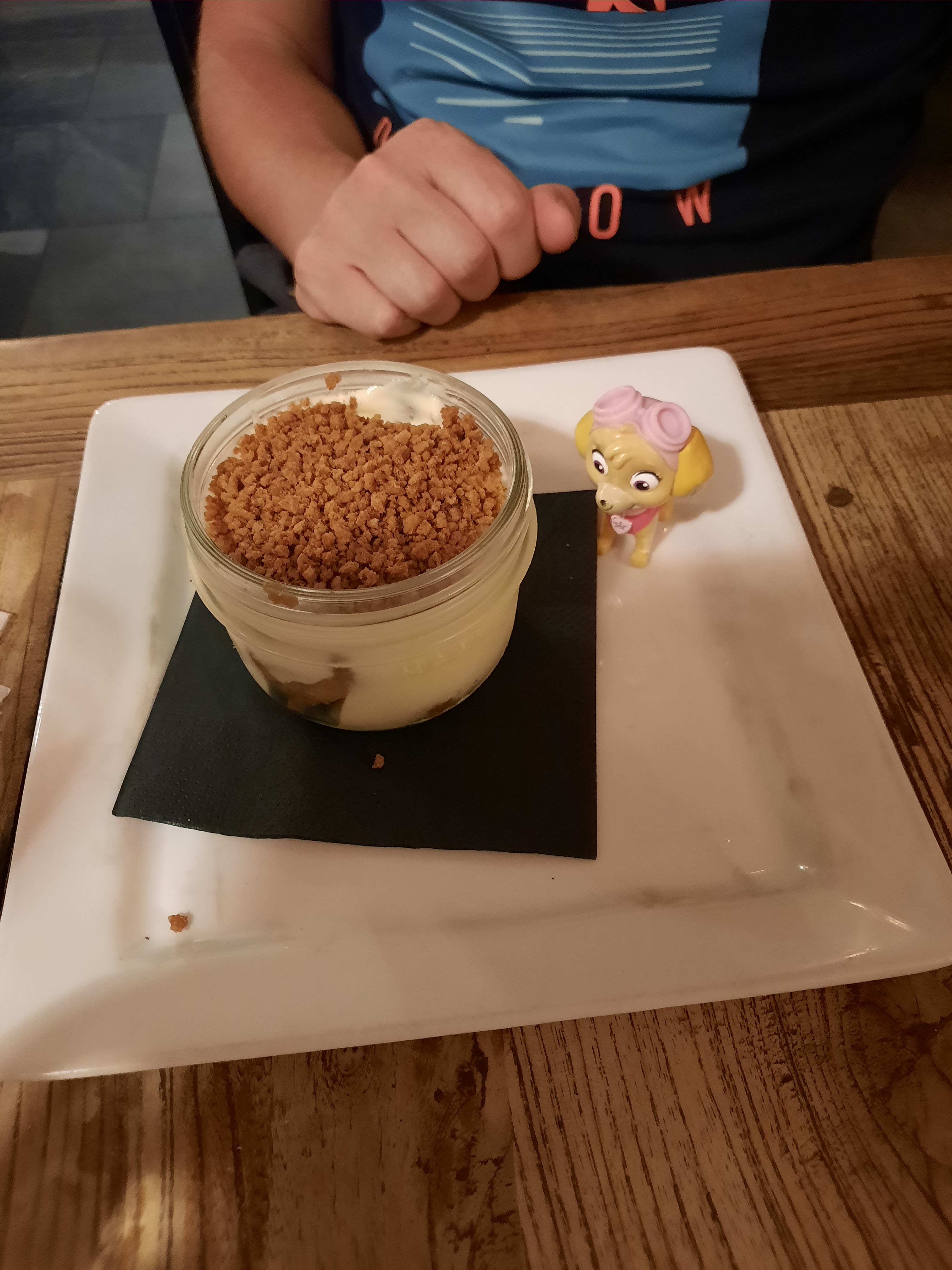 Équipe souriante, sympathique et aux petits soins, patron courtois, service dynamique et sans attentes malgré le monde présent ... pour les plats, menu enfant avec choix pour le dessert, ce qui est rare, burgers savoureux, viande au top et cuisson parfaite, mention spéciale pour les desserts et la musique, un bon repas en famille, merci à vous !