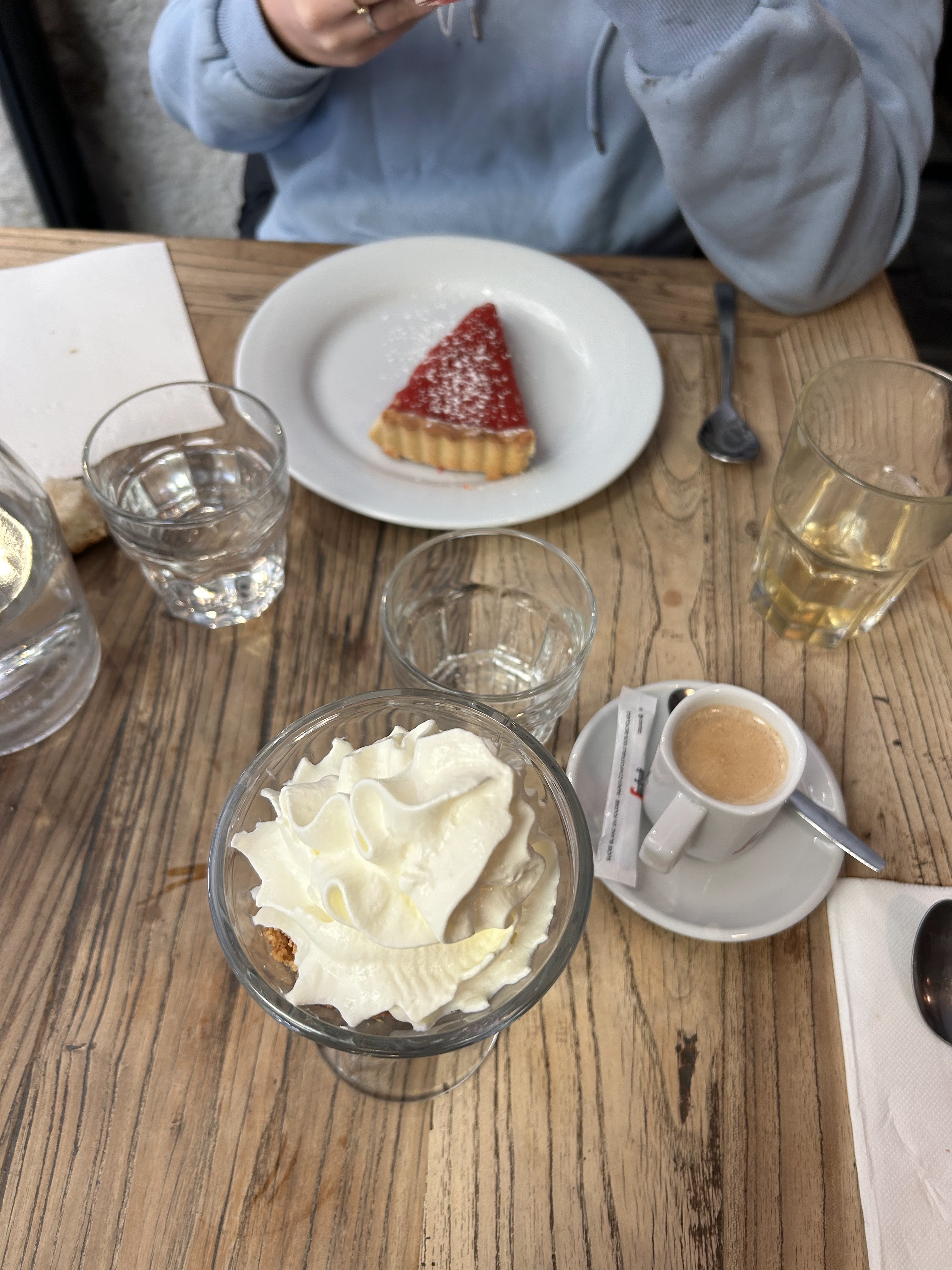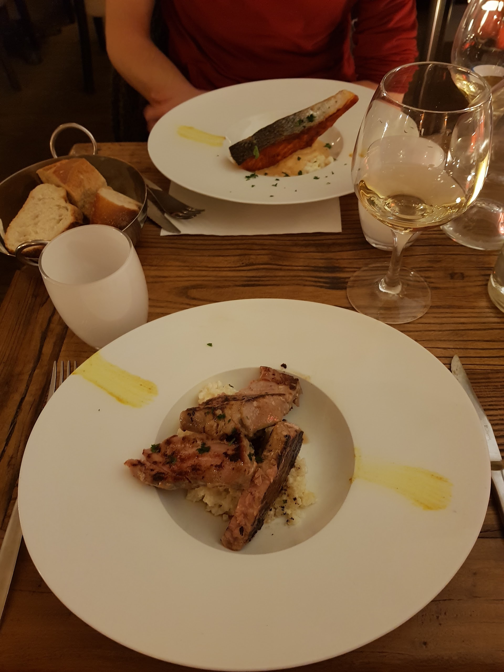 Plat manque cruellement d'assaisonement, froid, pomme de terre pas cuite,... Surtout pour ce prix la.... Puis quand on voit un des serveurs mettre un verre de vin rouge d'un client (presque vide) dans une bouteille qui rebouche par la suite... Ça donne vraiment pas envie ! Bref, les deserts eux on été passable.