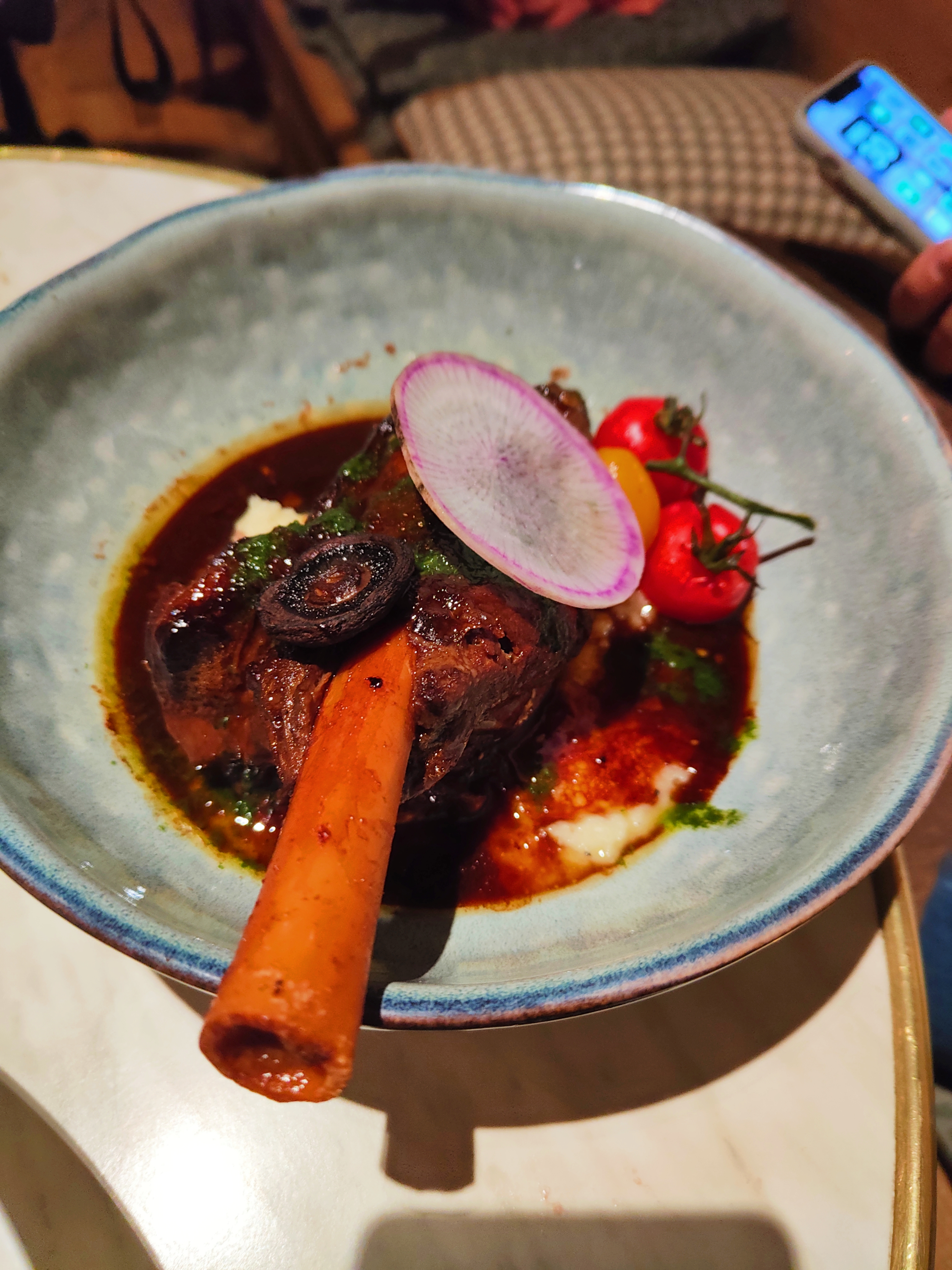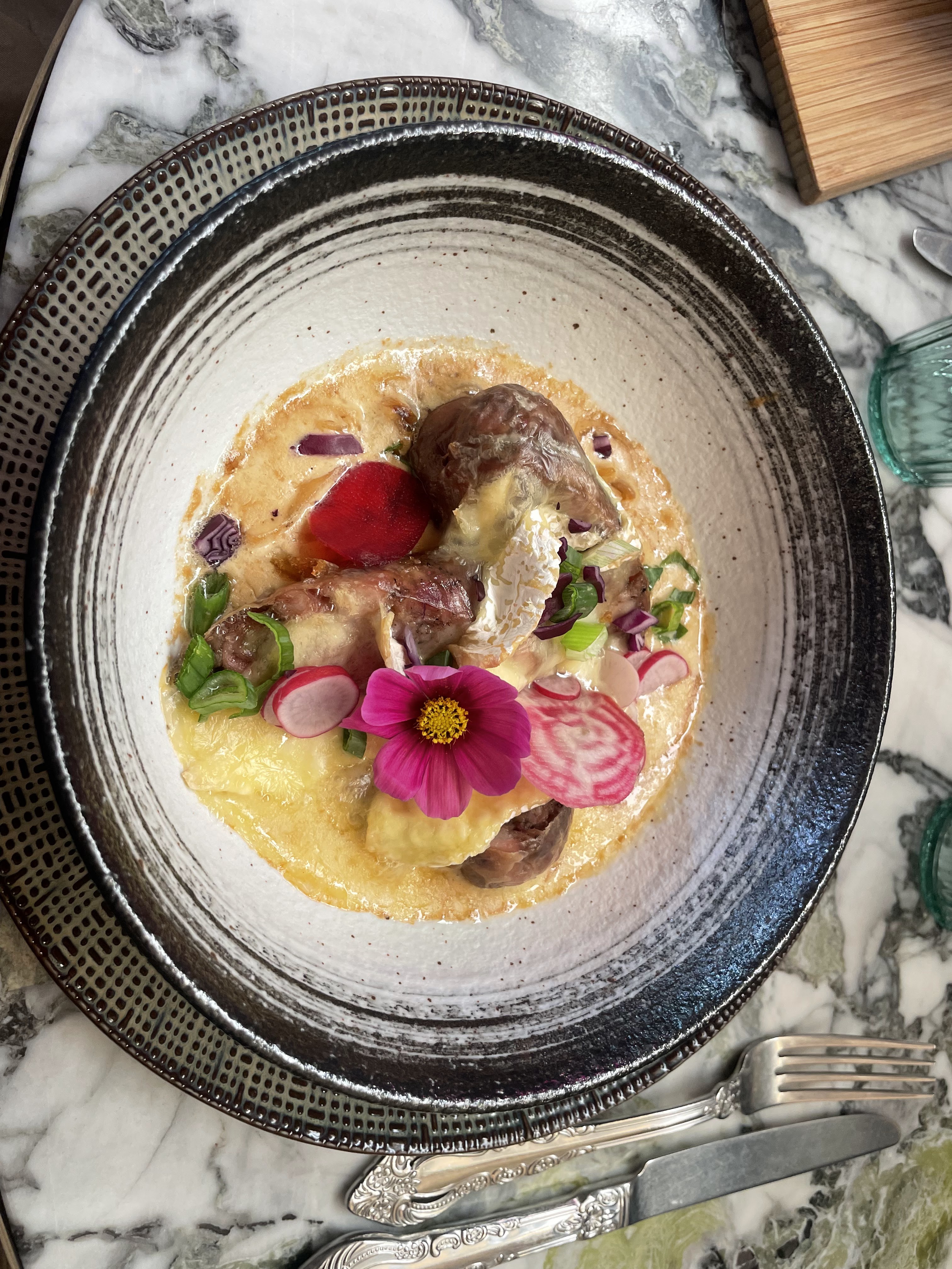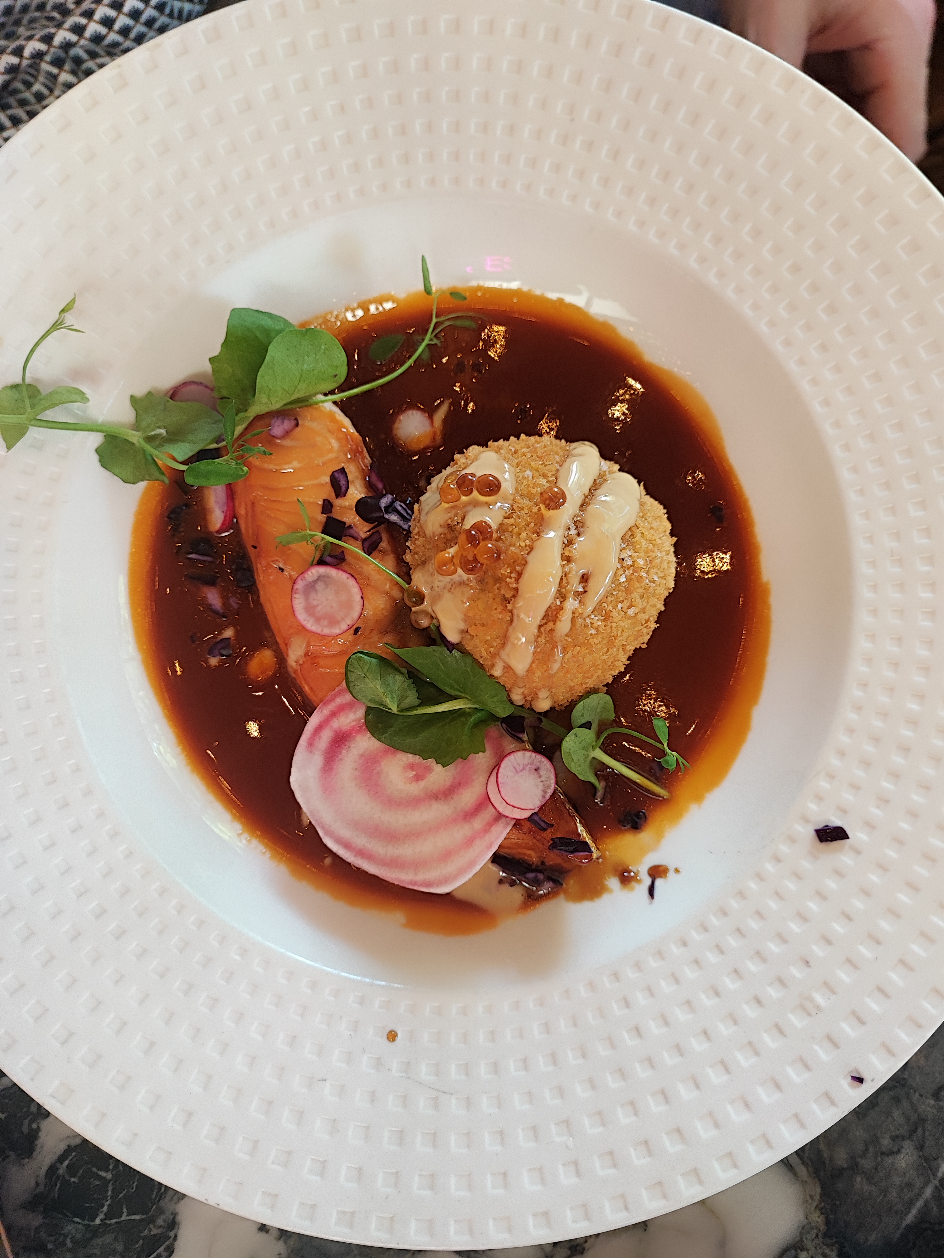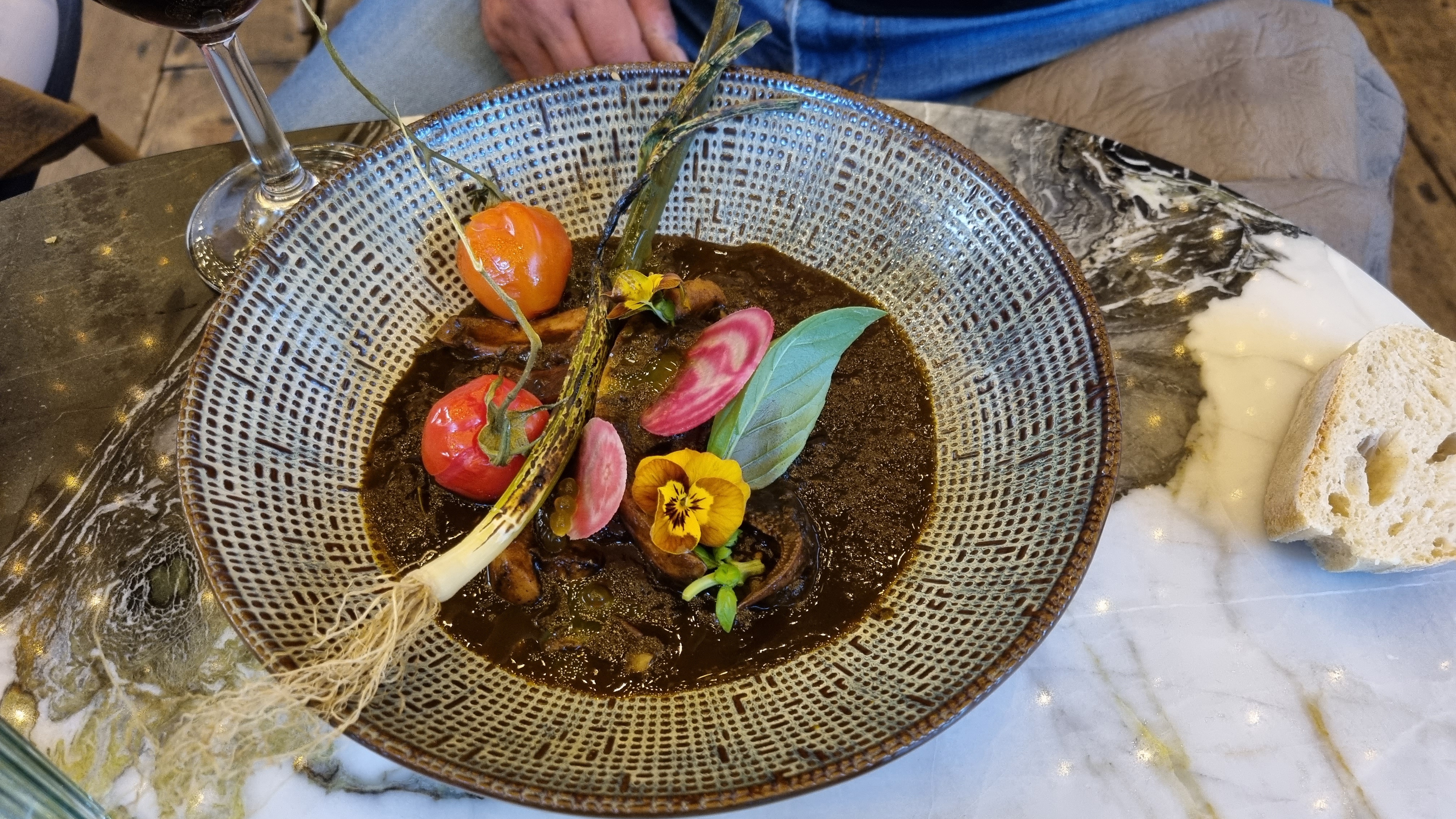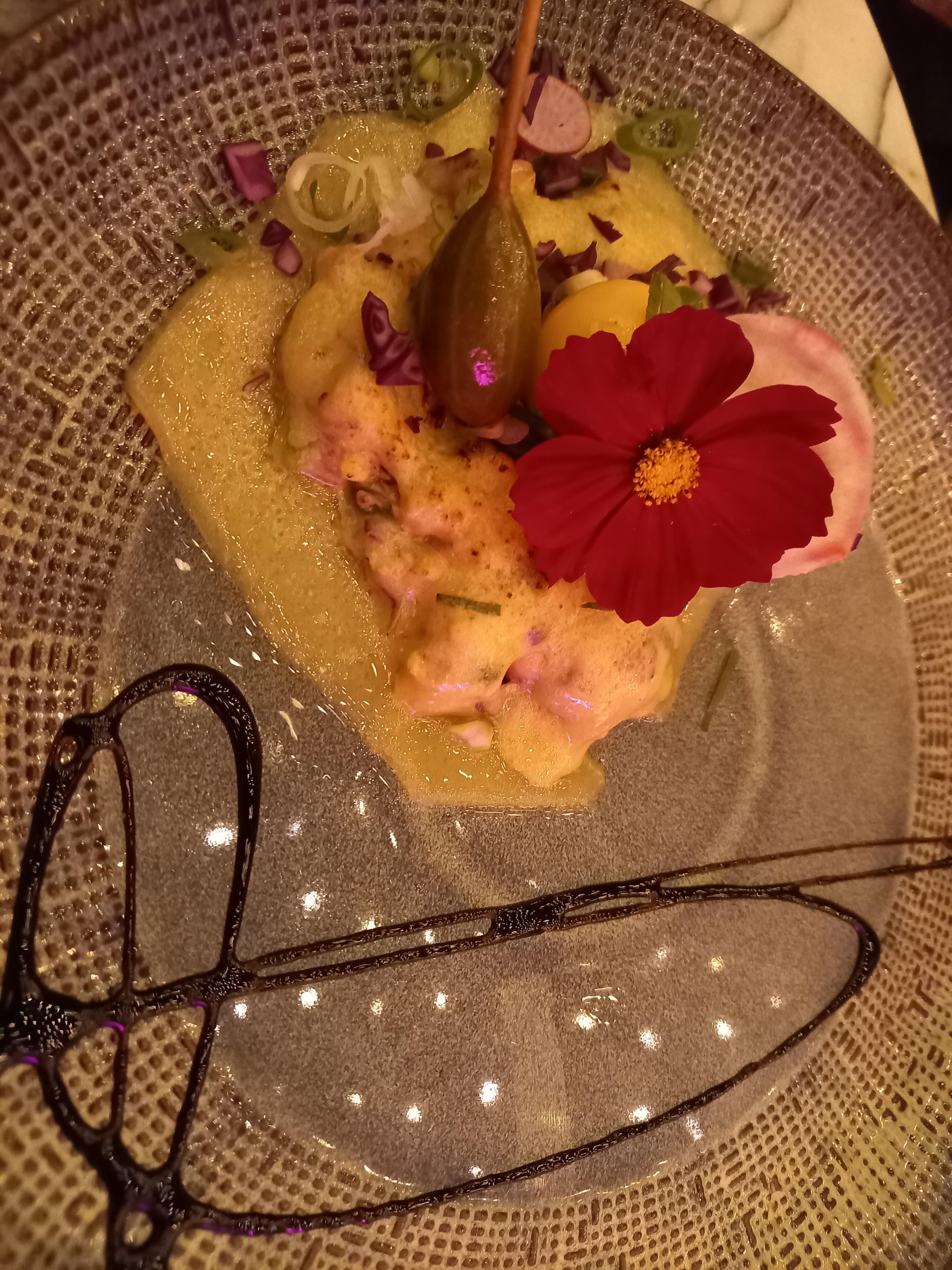 Dans un cadre chaleureux et festif, une cuisine riche mais inventive avec de belles réalisations visuelles et gustatives. Un très bon moment.