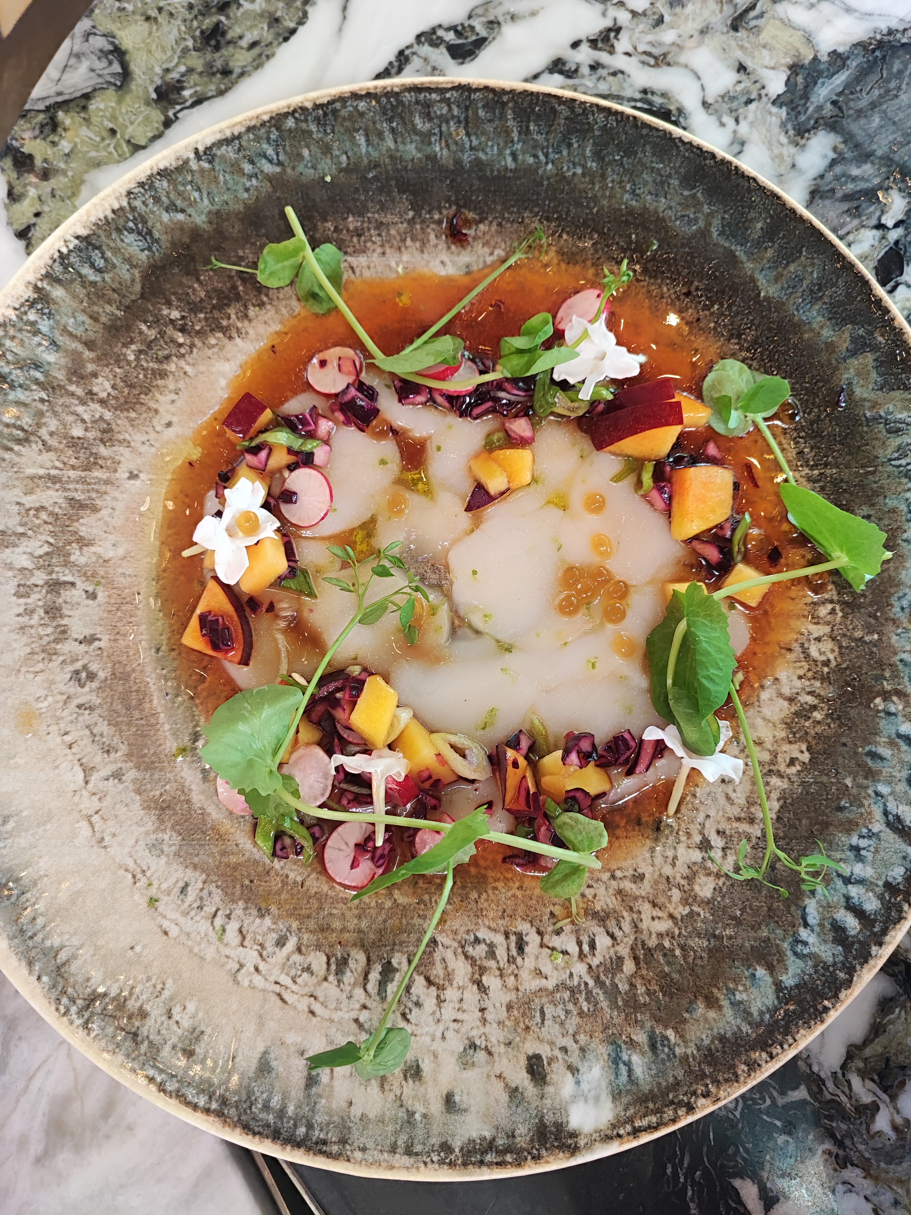 Bonne cuisine originale mais pas trop , ni excentrique ni conceptuelle, bons produits, presentation originale de surcroit