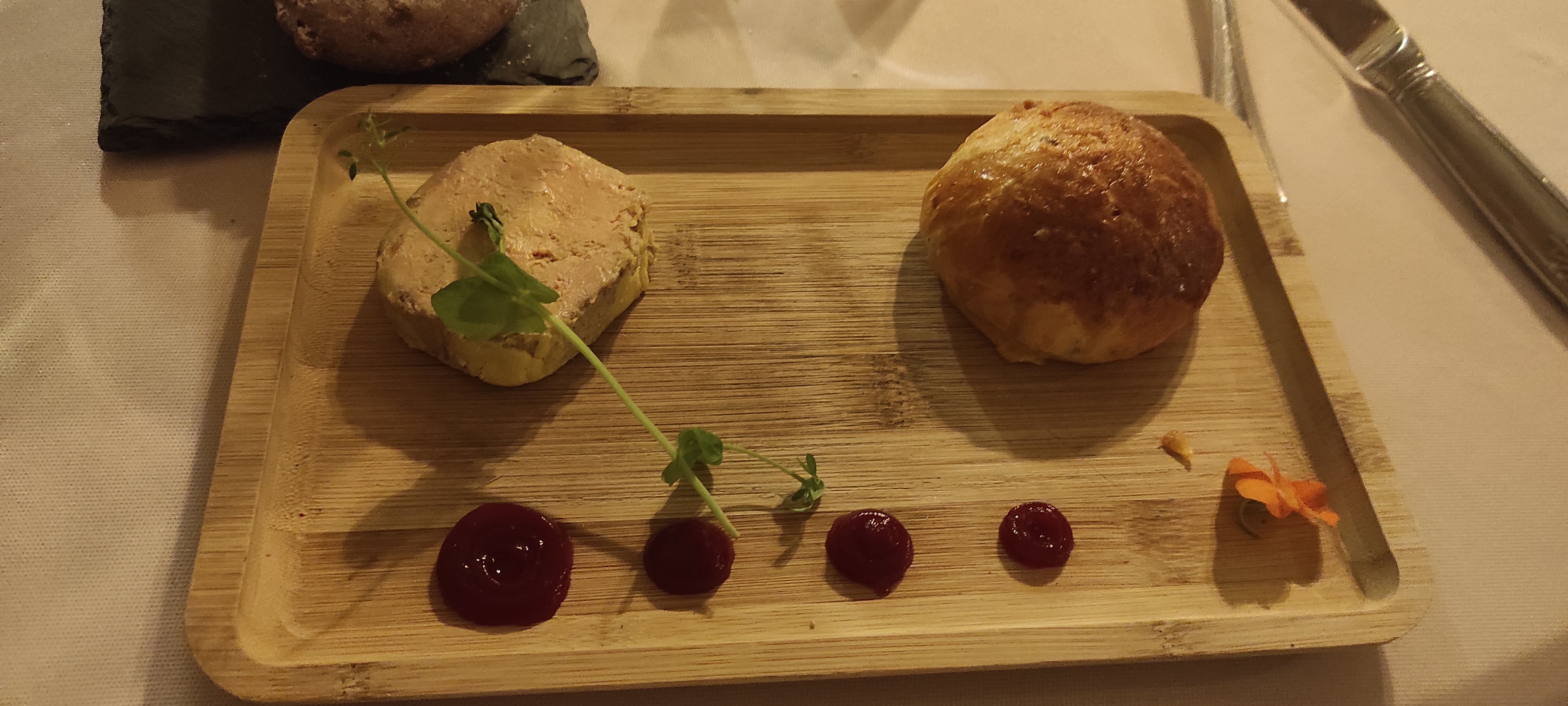 Un peu déçu super entrée et excellent dessert mais le saumon était mal cuit et les parties noires,plus de la moitié n avait pas été enlevé dommage Au demeurant ,personnel très agreable