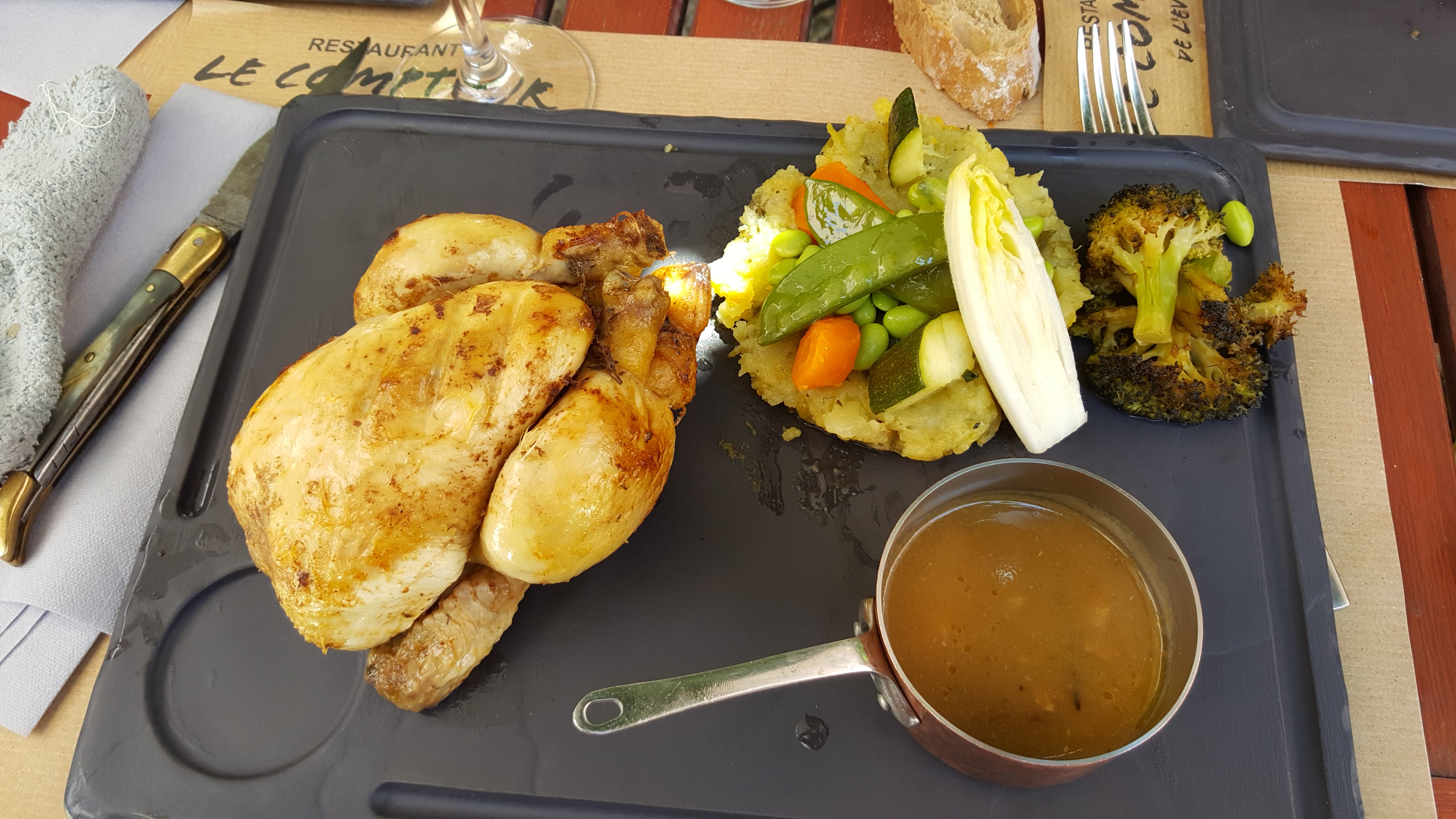 Excellente expérience au comptoir de l'Evesque.L'artichaut à la sauce hollandaise,un délice.Ensuite, le magret de canard était vraiment trop bon sans parler du burguer au couteau,un régal. Service au top et très sympa.Je recommande 1000 fois ce restaurant.