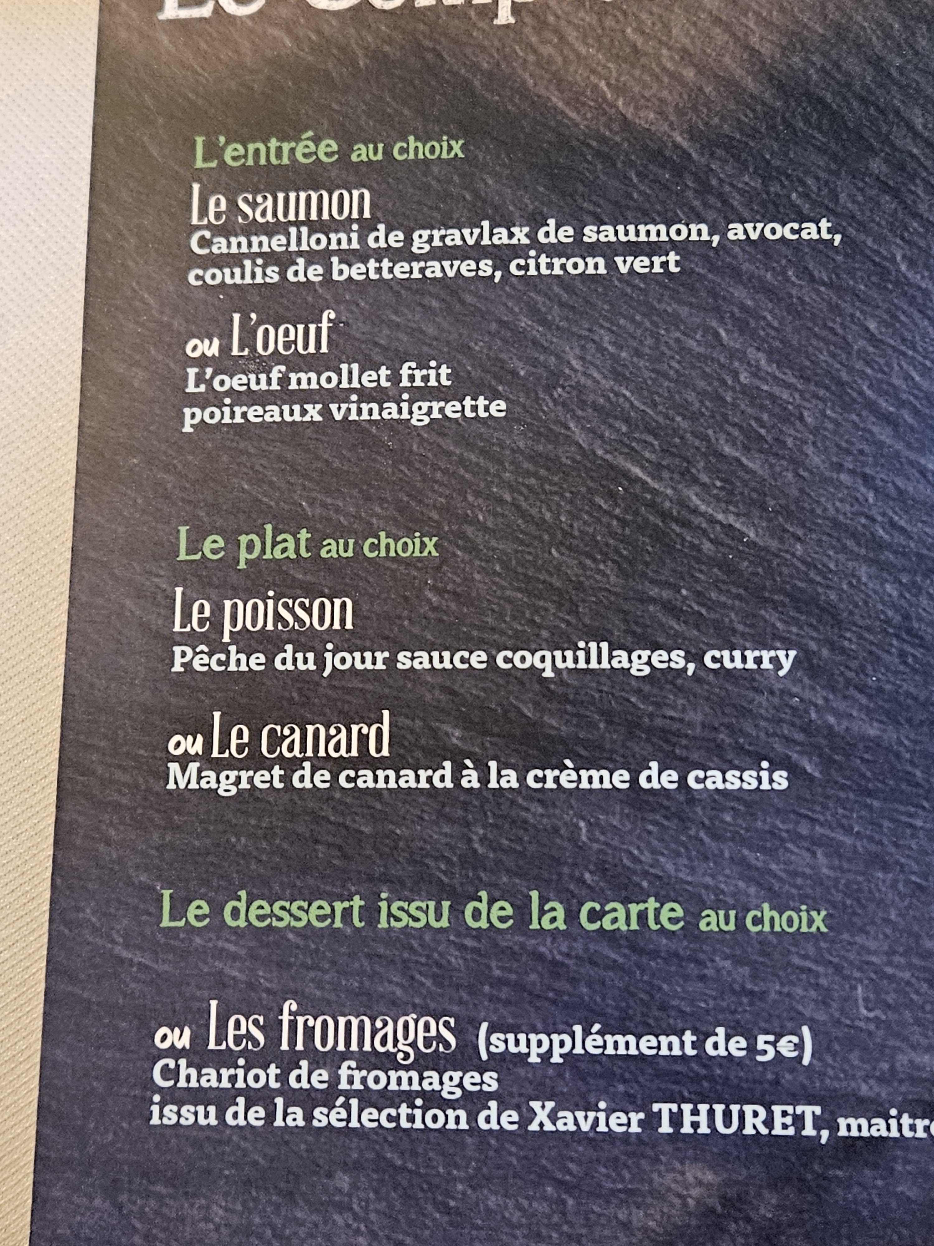 Nouveau propriétaire ,choix très limité. C était mieux avant...dommage 29.10.2023 Bon menu à 38 Service impeccable Repas très bien foie gras avec mariage pain d épices Excellent Un très bon moment culinaire