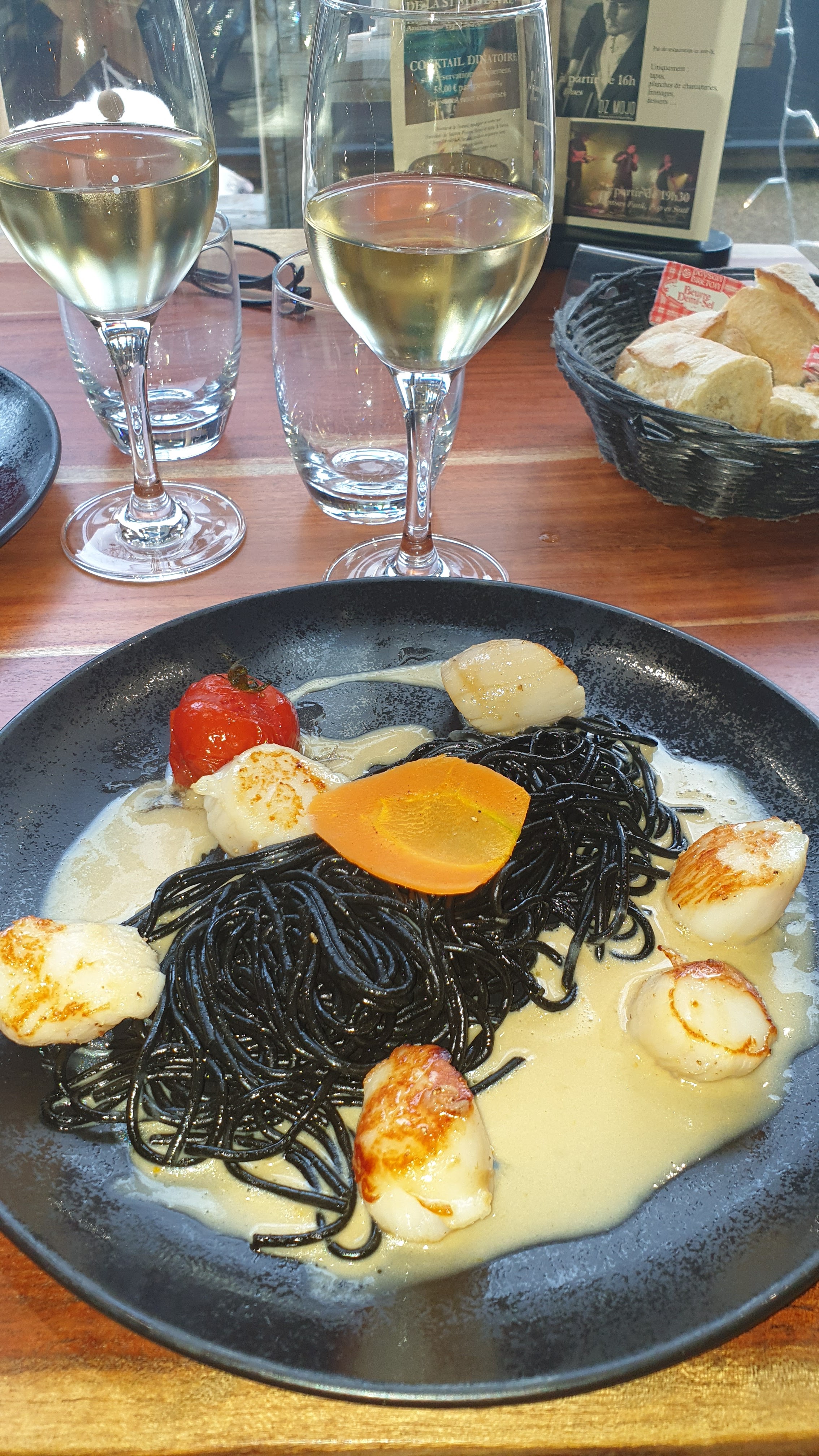 Très bon petit concert jazz et nous avons choisi juste un plat, pêche du jour, que l on a trouvé, simple, cuisson parfaite, plutot très bon. Service très agréable et efficace. Lieu bien décoré, super pour un dîner romantique.