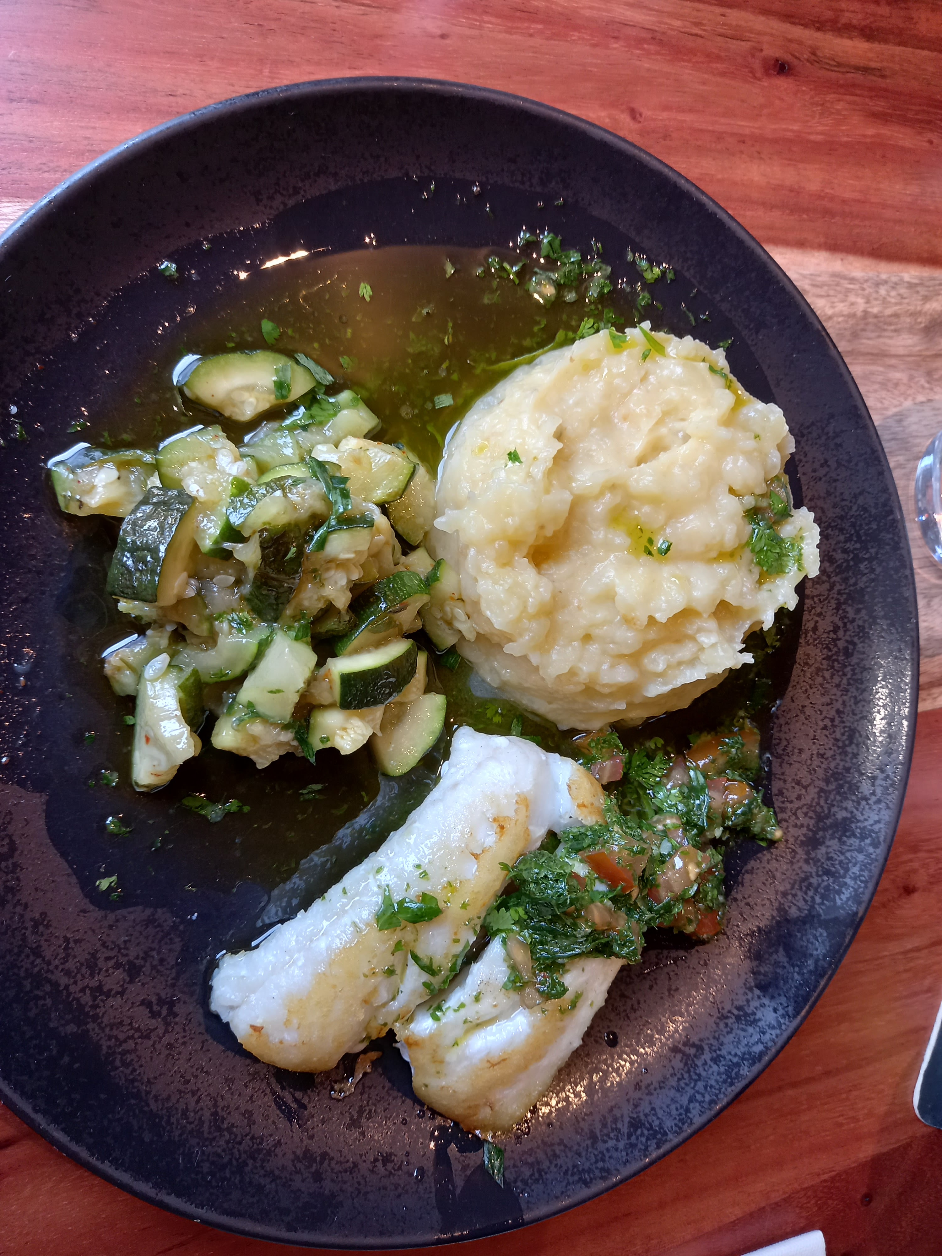 Décor très agréable. Carte variée, de belles assiettes. Bémol sur le service qui est un peu long.