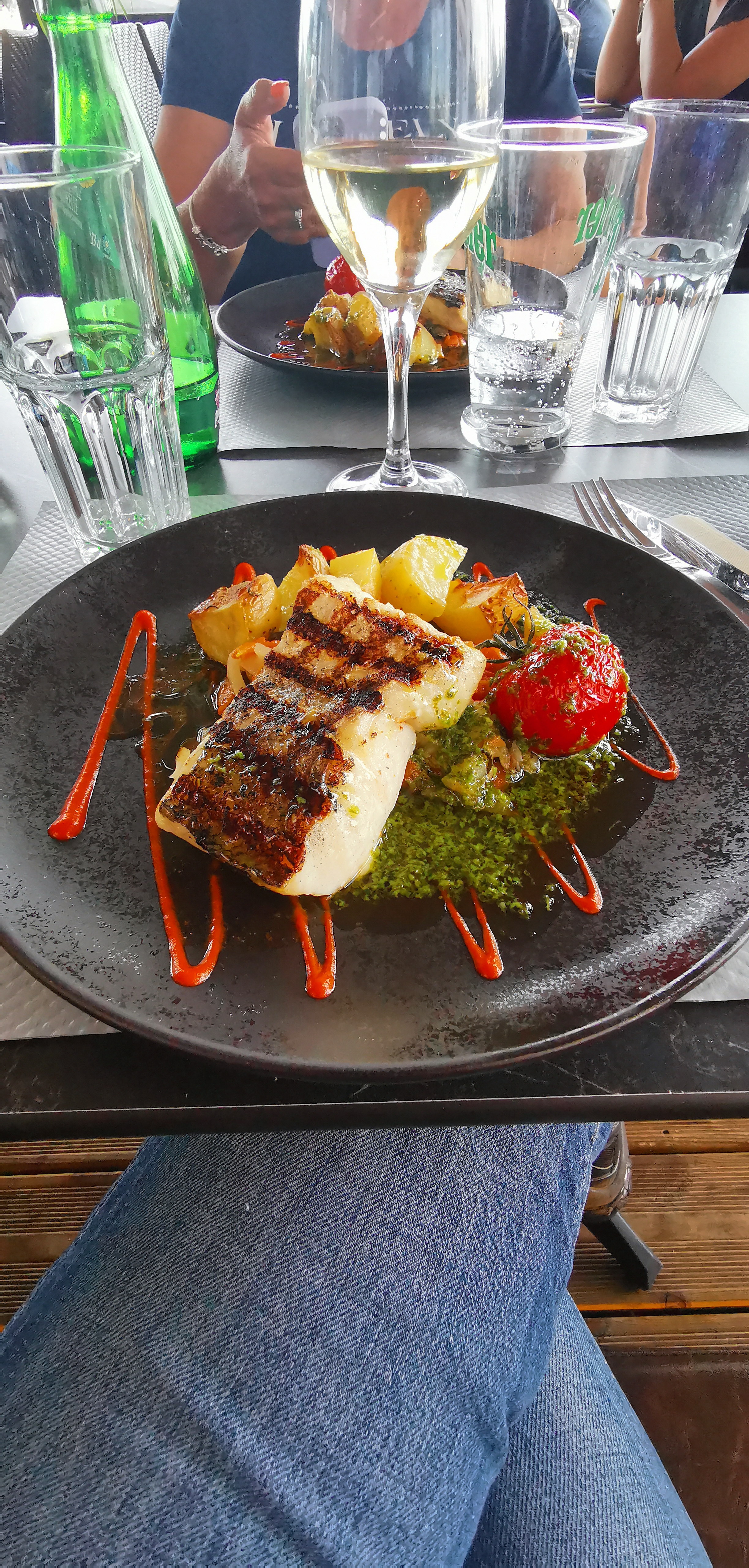 Repas pris en intérieur à cause du temps . Début de saison pour le resto. Pas beaucoup de monde. Pris une lotte avec ses légumes. Très très bien. Même avec l'addition. Je recommande.