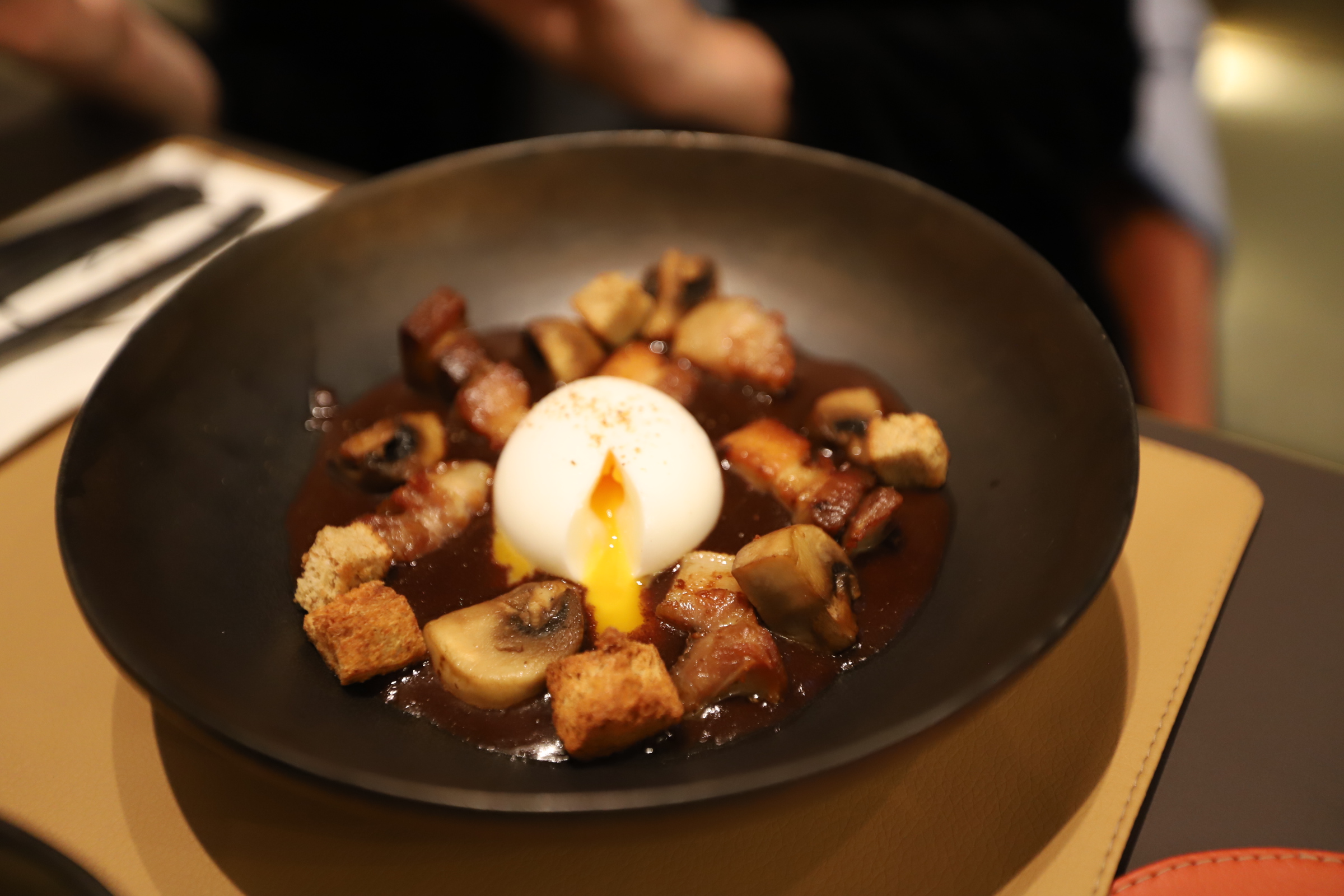 Entrée oeuf meurette,plat chevreuil gratin de buternut, dessert, champion cèpe et chocolat. Un délice, Accueil chaleureux , convivial et professionnel. Le top.