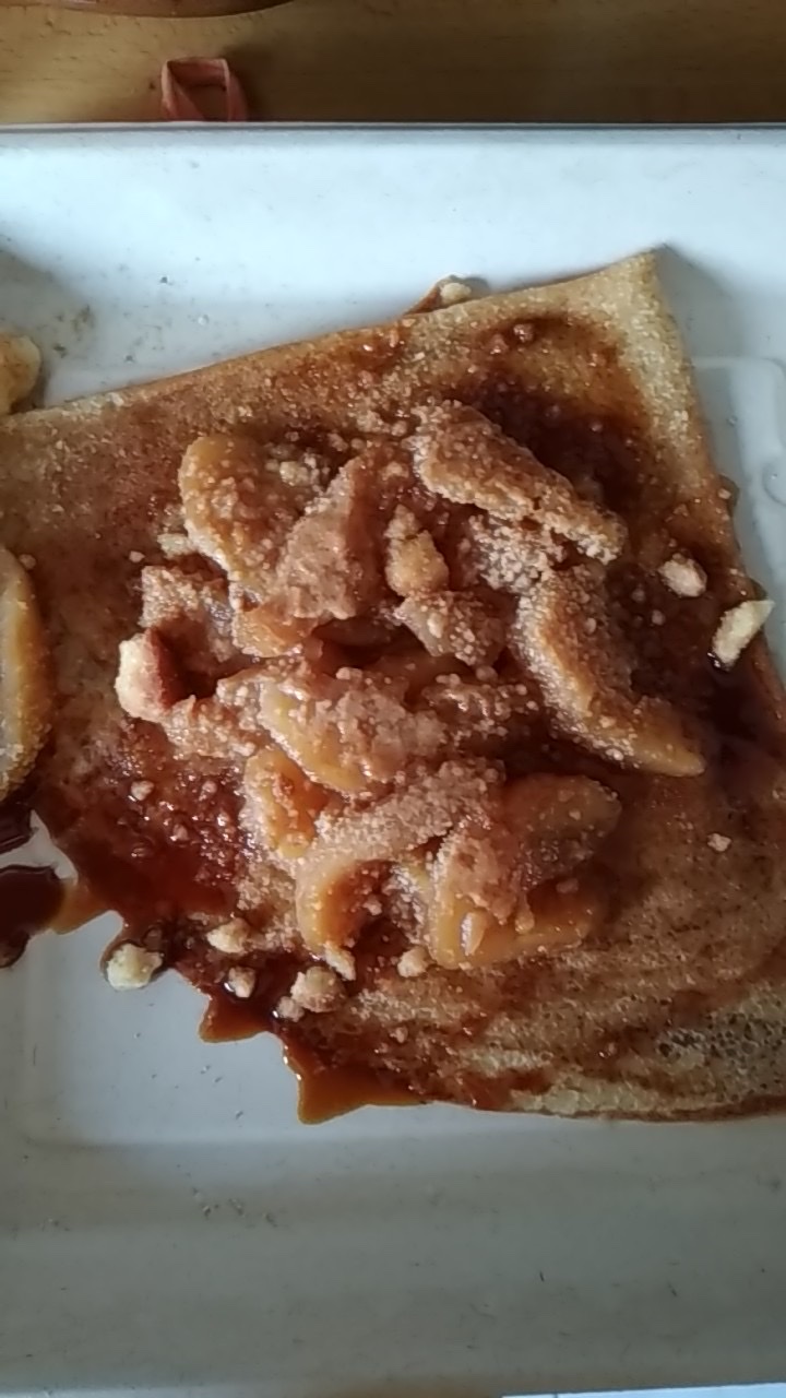 De très bonnes crêpes comme d’habitude ! La pépé Robert façon raclette est vraiment bonne 😄 En dessert la crêpe à la confiture de fraise est également bonne ! De plus ils n’ont pas hésité sur la confiture et c’est vraiment bien ! Je recommande ce restaurant qui en plus en temps normal lorsque l’on peut manger sur place à une décoration vraiment sympa et une équipe vraiment agréable !