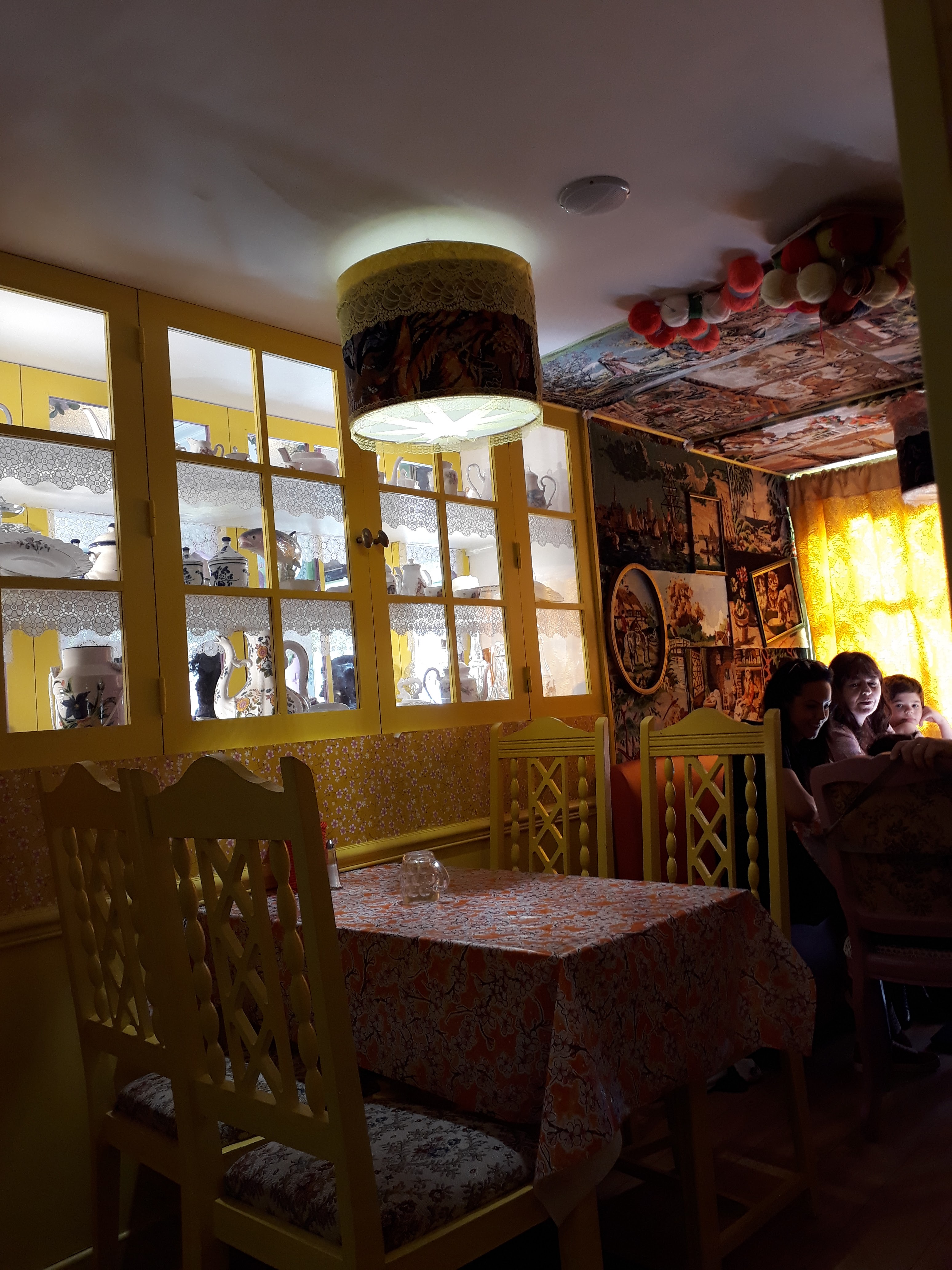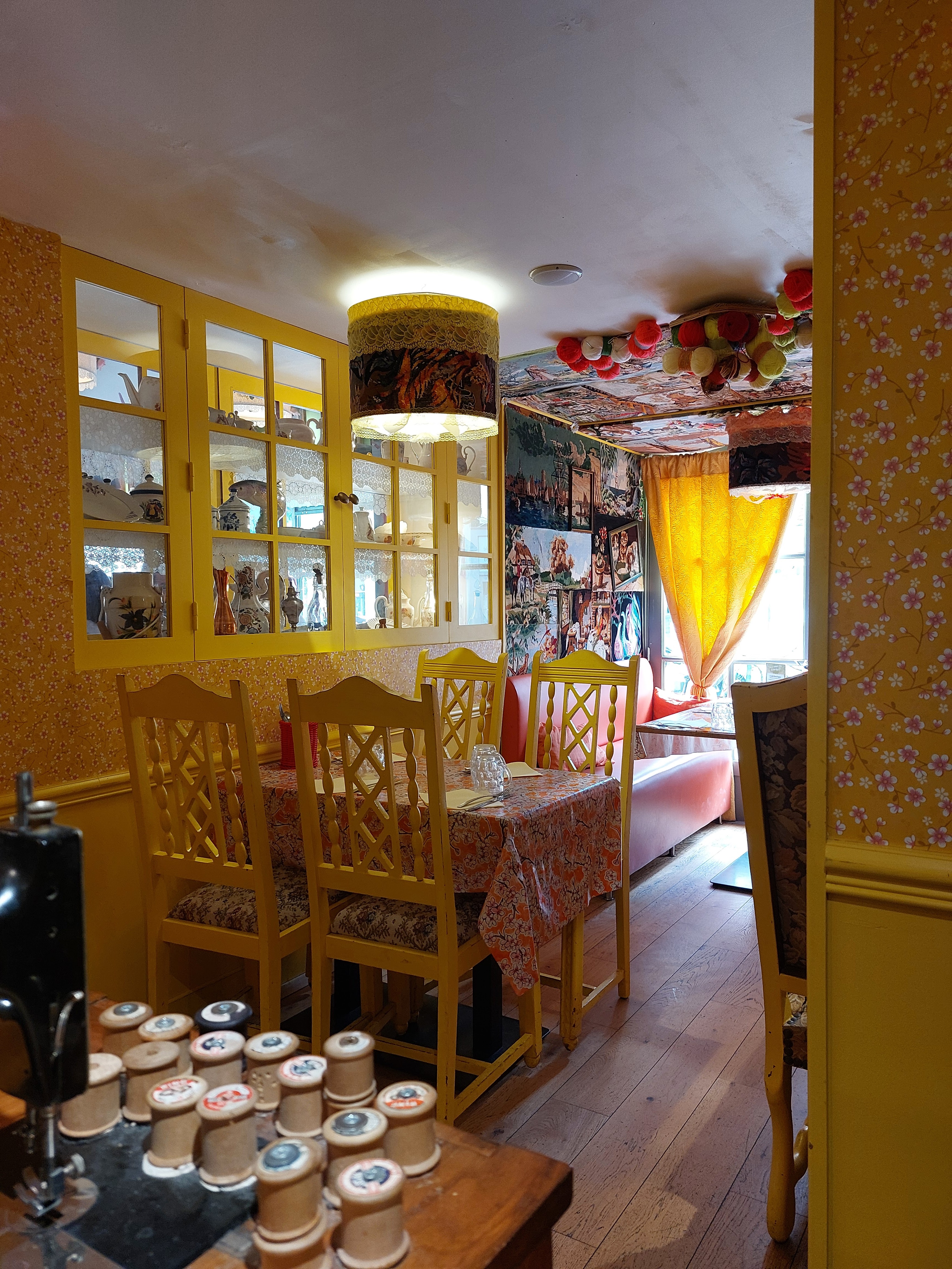 Je n'ai pris qu'une crêpe et un thé, c'était très bon. Le service est sympathique. La déco du salon est très colorée et kitch 🙂