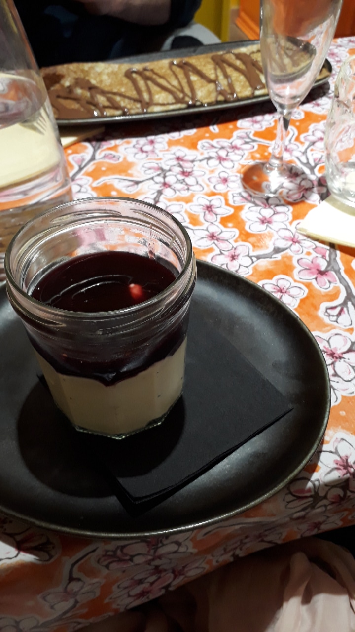 Nous avons souhaité tester Mamie Bigoude Orléans après avoir adoré celui de Tours. A notre arrivé nous constatons une décoration dans le thème grand mère bien réalisée. Nous commandons une crêpe saucisse fumée et une crêpe de saison au saumon fumé. Dans l’ensemble les crêpes au sarrasin sont sèches et le dessous de celles-ci a un goût de trop cuit. Concernant le saumon fumé : nous avons un petit doute sur la qualité de celui-ci, il dégage une forte odeur et le goût n’est pas au rendez-vous. Le dessert qui nous intéresse n’est plus disponible (un de crème au caramel avec des pommes). Nous partons sur un café gourmand avec une version miniature de plusieurs desserts. Les pots maison sont bons, le coulis de fraise moins. Total pour un cidre, un thé glacé , deux crêpes salées et un dessert : 36 euros. Abordable mais la qualité n’est pas au rendez-vous sur notre expérience. Dommage.