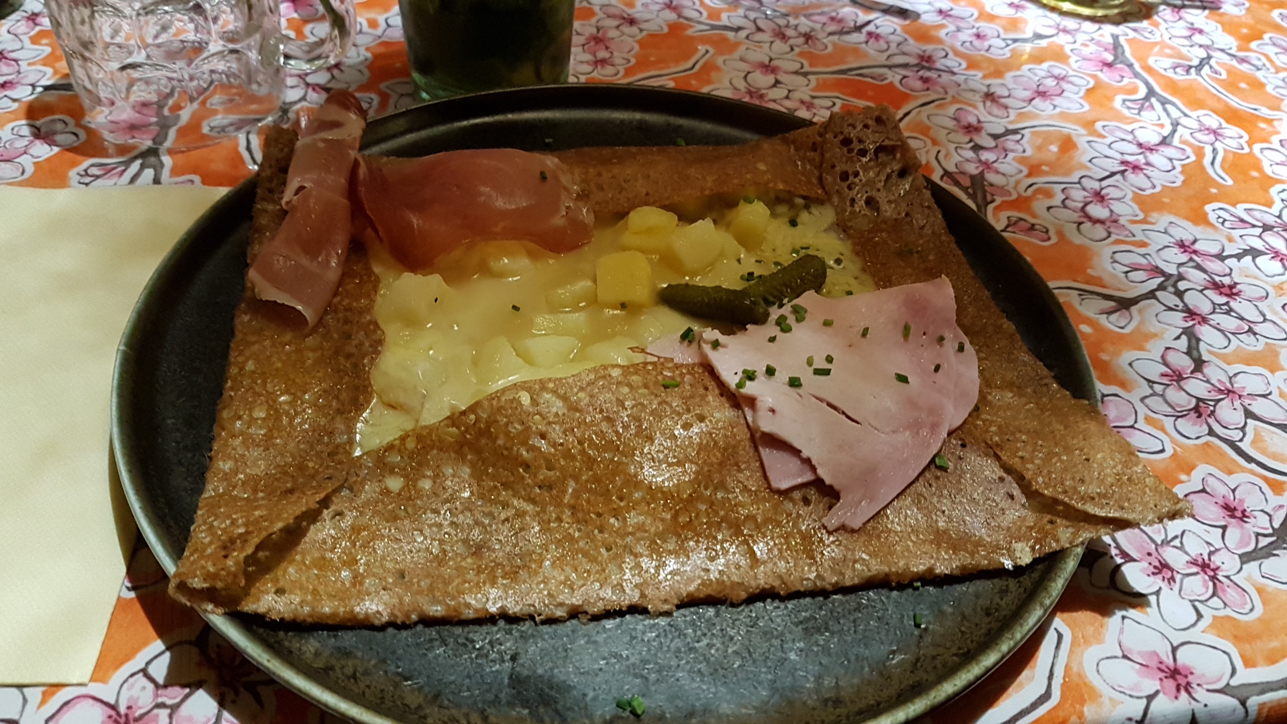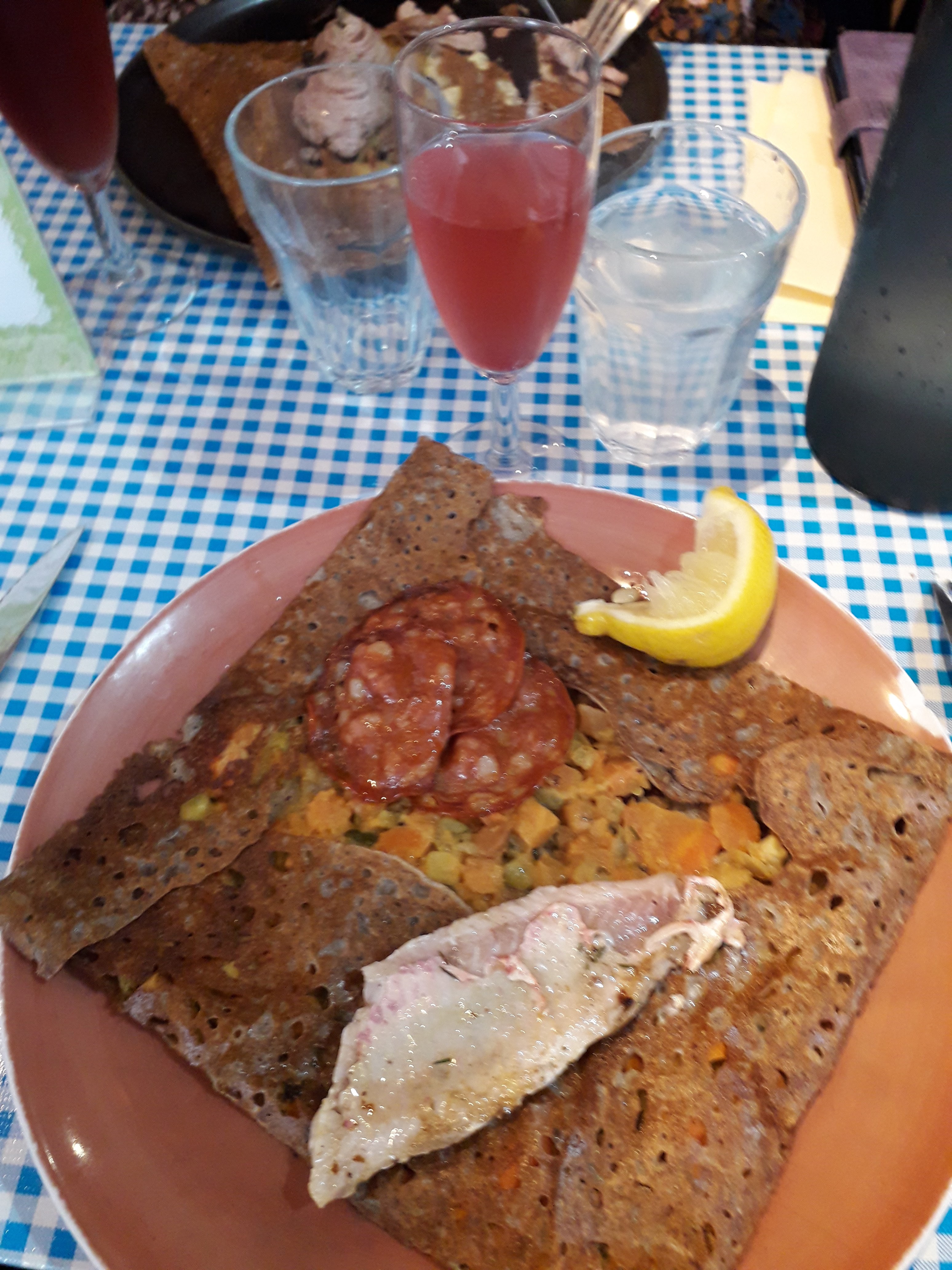 L'avantage de manger des galettes/crêpes c'est que le service est rapide. J'ai pris une galette à base de saucisse, sauce moutarde/miel, c'était très bon. Accueil chaleureux. Déco dans le thème, et intime. on s'y sent bien. Je recommande !