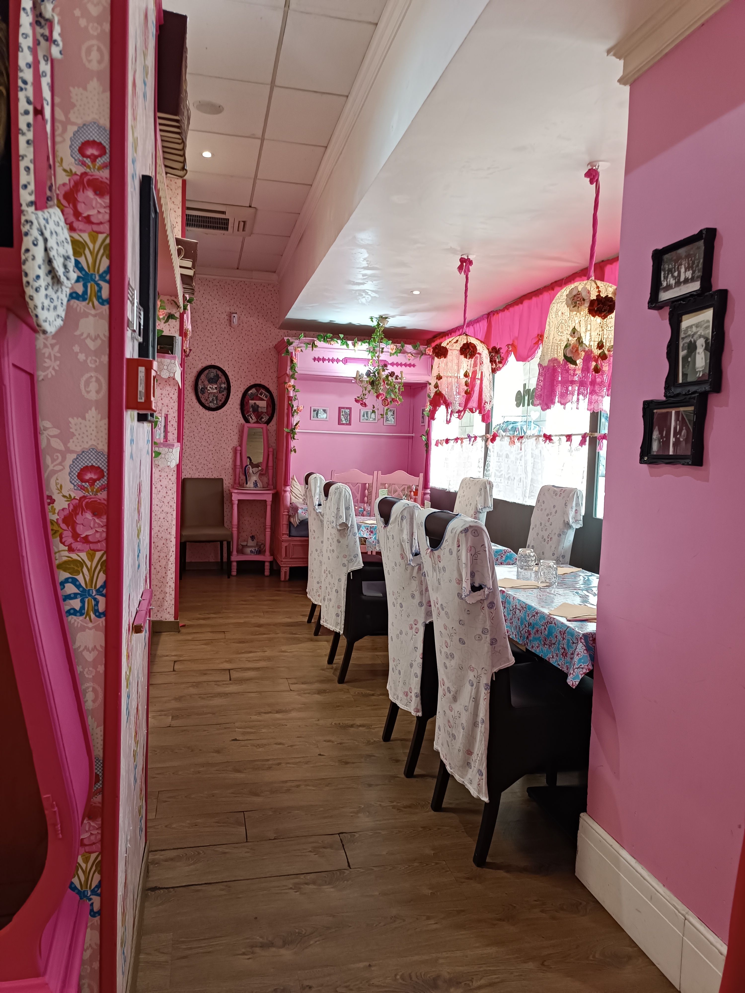 En voyant la devanture de dehors on pourrait prendre peur. Le rose et Cyprien que l'on se demande si c'est Barbie qui fait la cuisine. Une fois cet aspect de surprise passé on franchit la porte et on s'aperçoit que c'est une crêperie. Décoration et unique en son genre et chaque partie du restaurant et décorer comme une pièce de la maison. On s'y sent très vite comme chez soi et on n'hésite pas à commander une bonne crêpes en plat principal ainsi qu'une bonne crêpes en dessert. L'ambiance est agréable et reposante. Patron seront bien passé un bon moment même si cette franchise commence à se développer dans la région Centre point bonne vie à ce concept