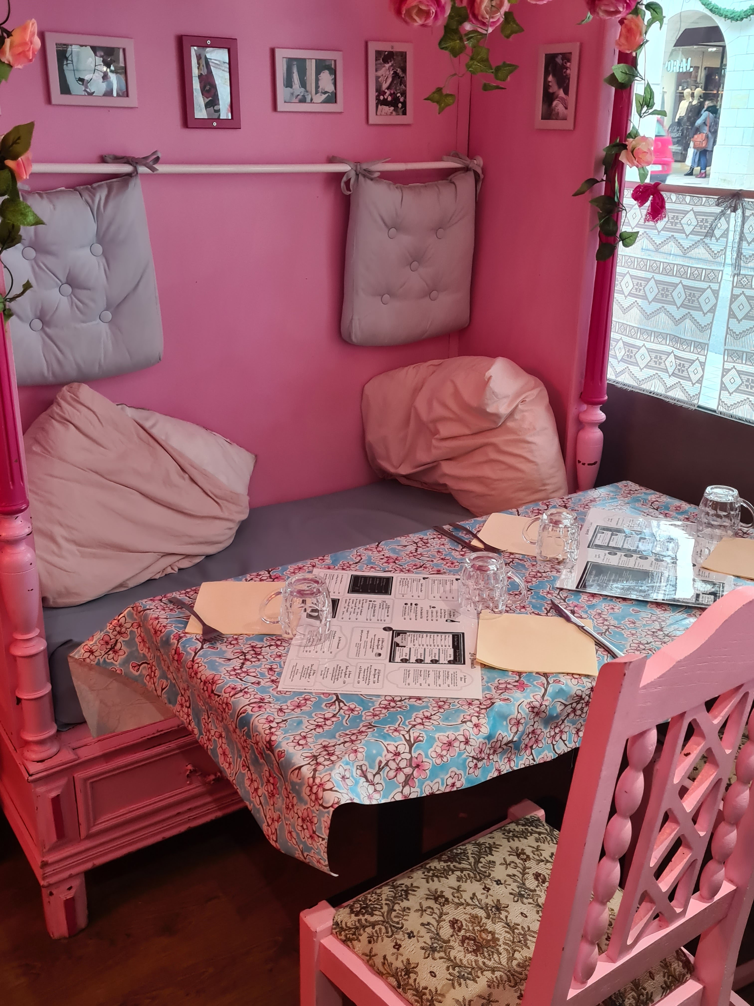 Restaurant trouvé un peu par hasard… lieu très atypique, très beau, coloré où on s’y sent bien. Il faut aimer le rose ! Nous avons pris deux crêpes composé…DÉLICIEUSES! Services rapide. Je recommande pour une petite pause goûter. Prix abordable
