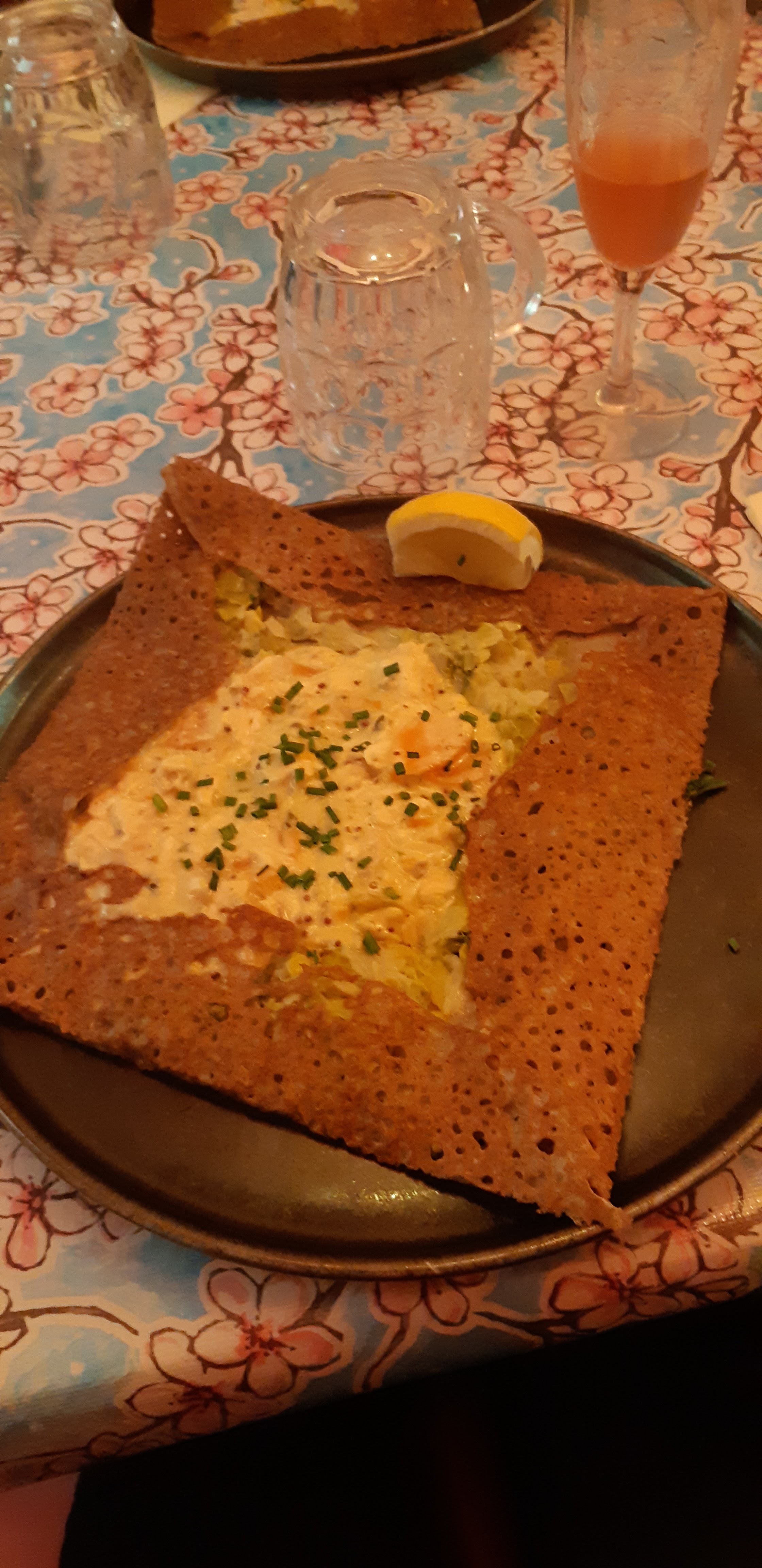 Le cadre est décalé et sympa, l'équipe est cool, le service rapide et les plats sont bons et originaux. On peut composer une galette selon ses goûts, pratique.
