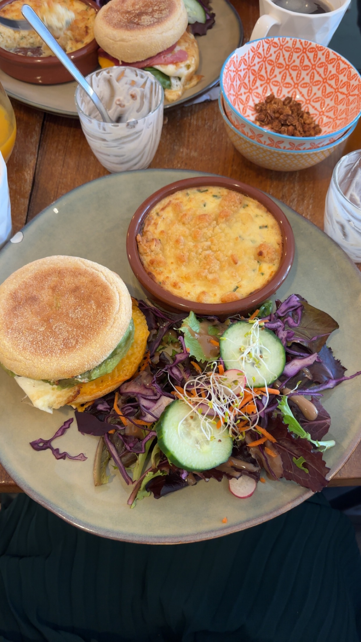 Agréable déjeuner dans ce joli endroit, les boissons étaient bonnes mais semblaient industrielles. Les plats étaient visuellement très beaux. Cependant j’ai choisi ce restaurant plutôt qu’un autre en voyant les très bonnes notes mais je n’ai pas trouvé l’accueil spécialement agréable, le plat était bon mais je n’ai pas été convaincue par cette cuisine, j’ai trouvé que le gratin (?) manquait de sel, je n’ai pas été très fan du goût du scone salé. Le cappuccino était quant à lui bon et les pâtisseries donnaient envie mais je n’avais plus de place après le scone au bacon.