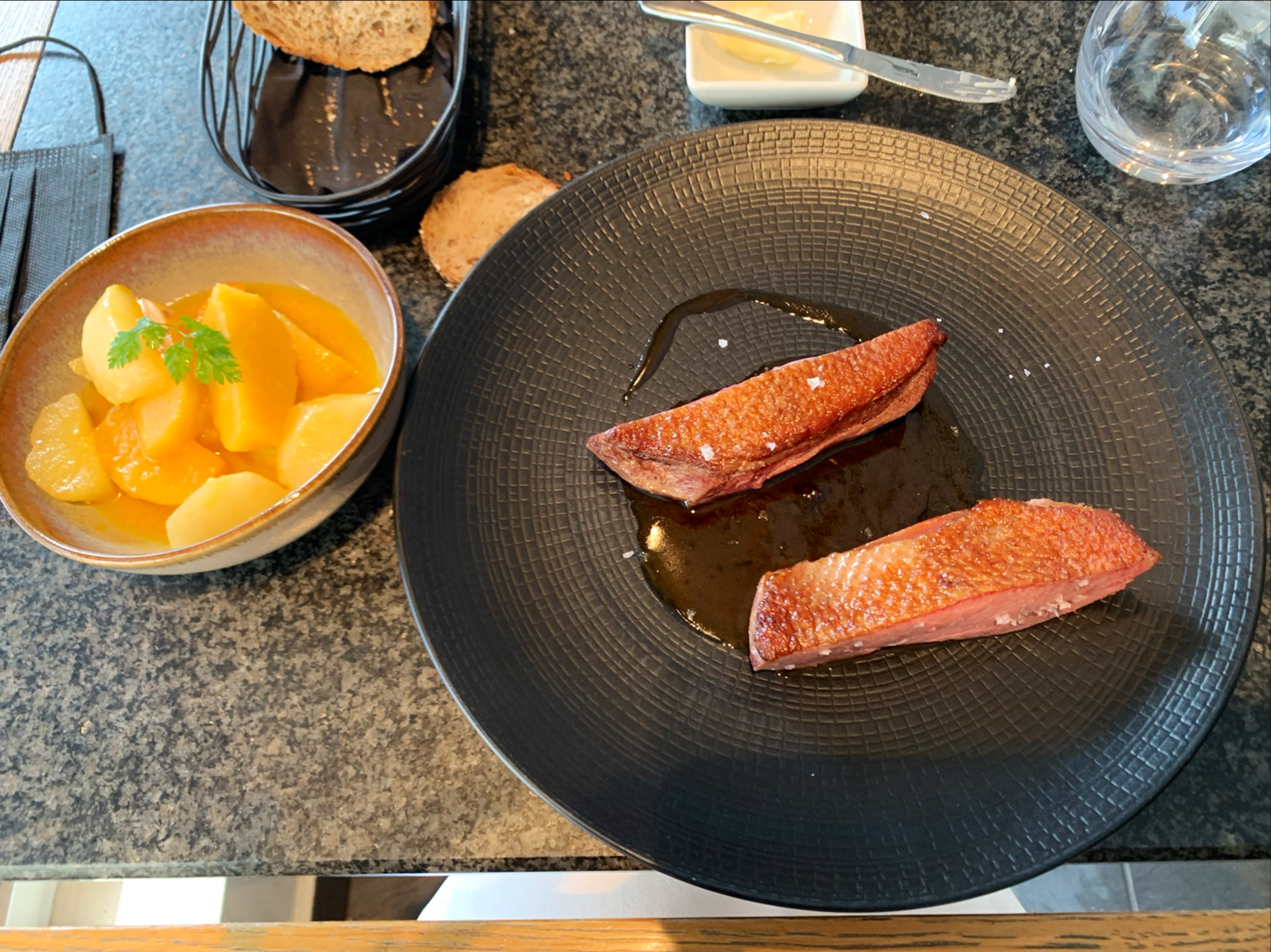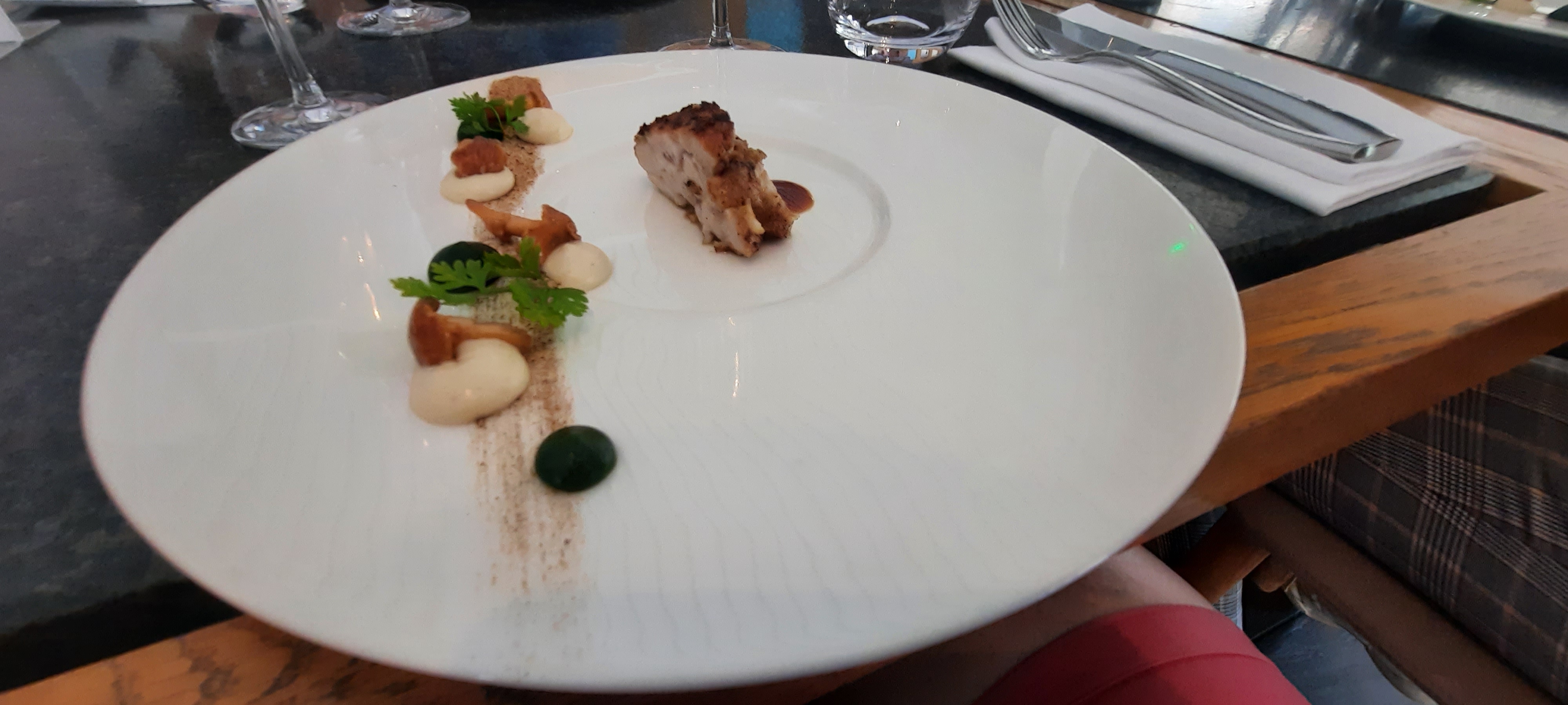 Excellente carte des vins et nourriture. Le poisson était magnifiquement prêteras avec une peau croustillante et de savoureux légumes et sauces d'accompagnement. J'ai adoré l'amuse-bouche.