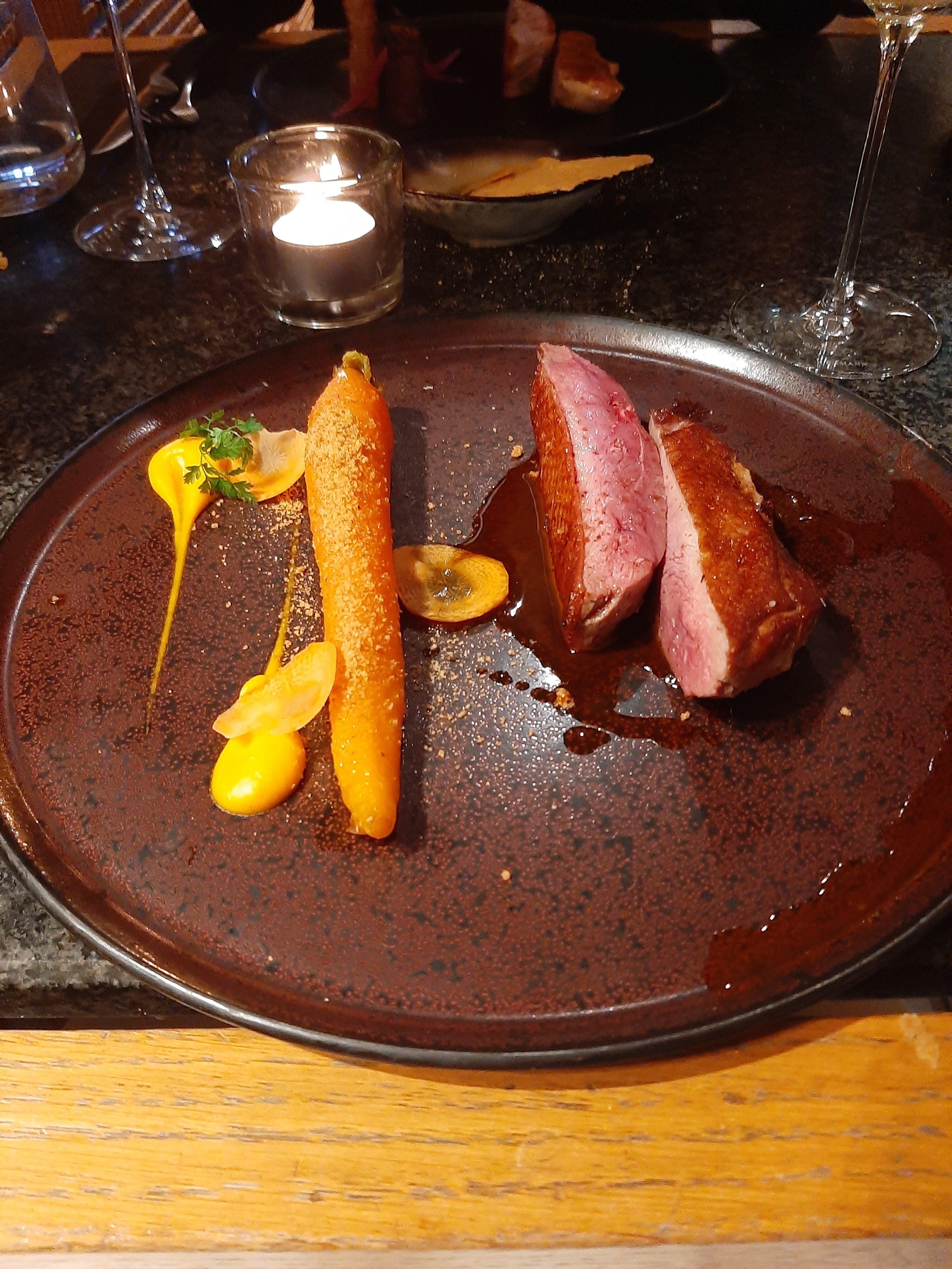 4,5 une légère déception sur le Main (le canard n'avait pas de saveur particulaire) ; mais la présentation était excellente. Un dîner raffiné et agréable