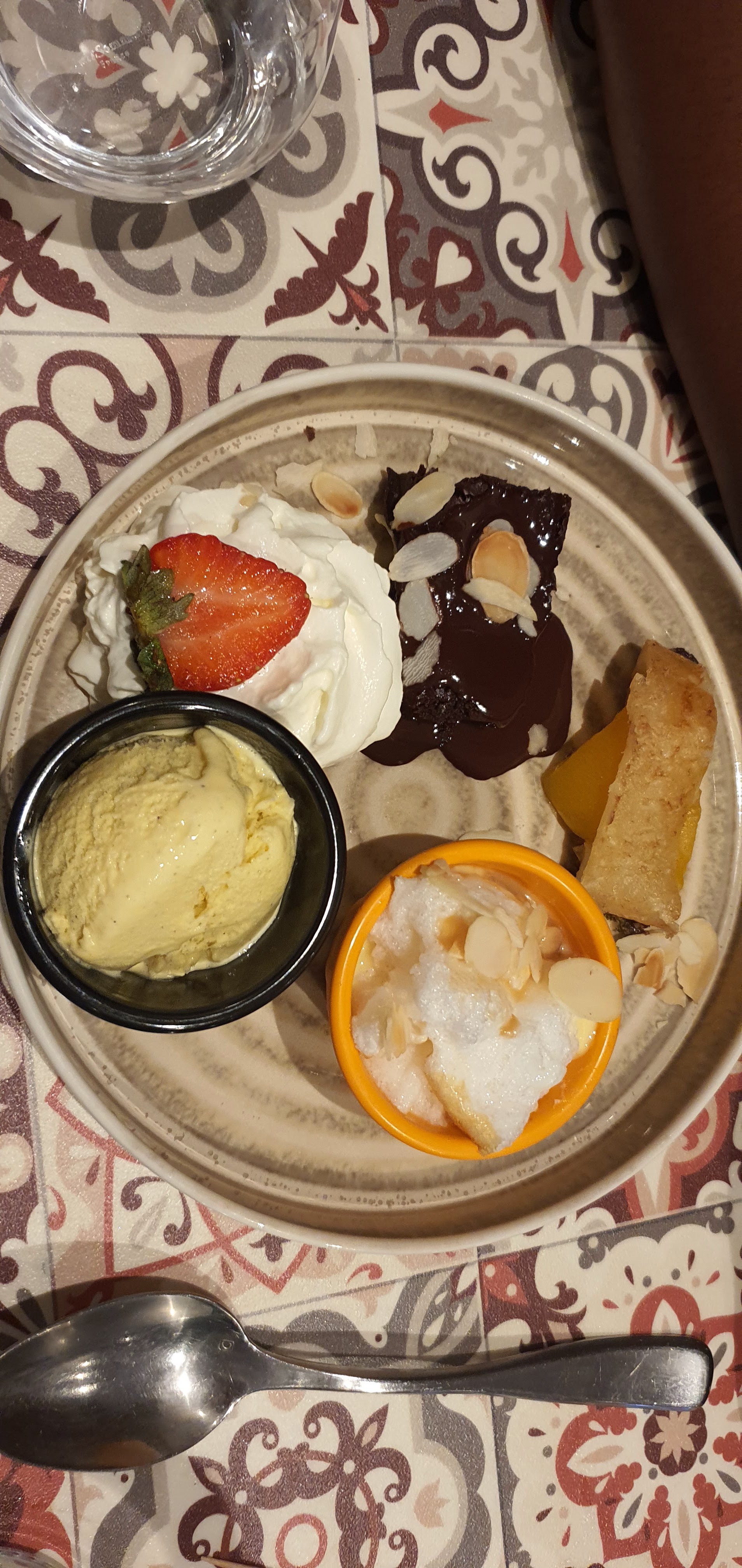 Très bonne ambiance, très bon repas et le dessert très copieux et très bon. J'allais oublié, notre serveuse qui a été au Top, attentive et efficace !! j'avais presque oublié que serveur était un métier !!! J'ai plus que tout apprécié, ce service, qui participe à 50% aux qualités d'un restaurant.