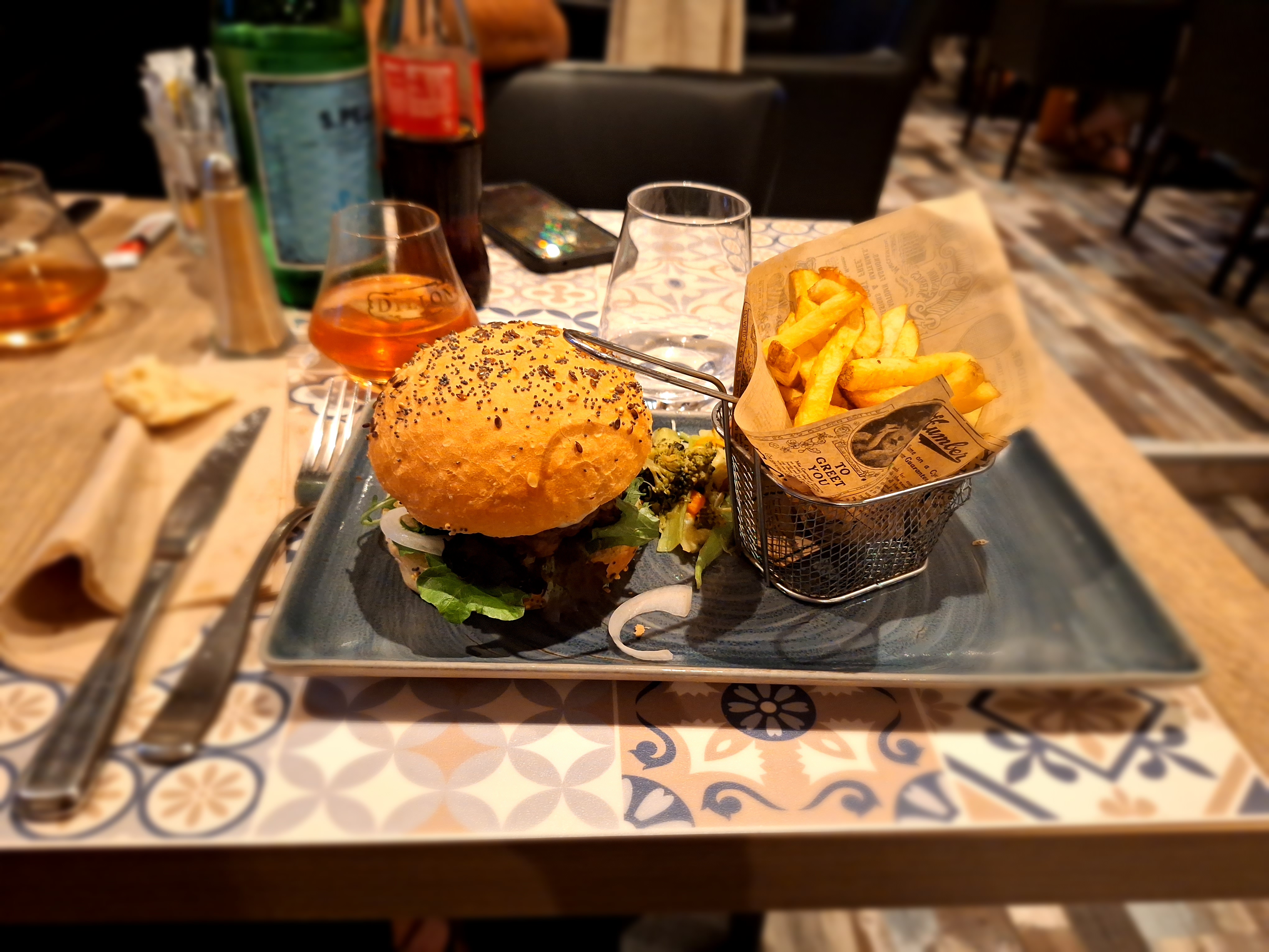 Une adresse conseillée par des amis et franchement nous reviendrons. Il vaut mieux réserver à l'avance, un samedi soir nous avons eu une place en terrasse en bord de route. Service très agréable, belle carte de vins et de plats. Les plats sont biens présentés et bien garnis. Un poil déçu par le burger, la viande bonne et bien saignante comme demandé mais le pain et la garniture était sans plus. Les profiteroles sont géants. Allez y.