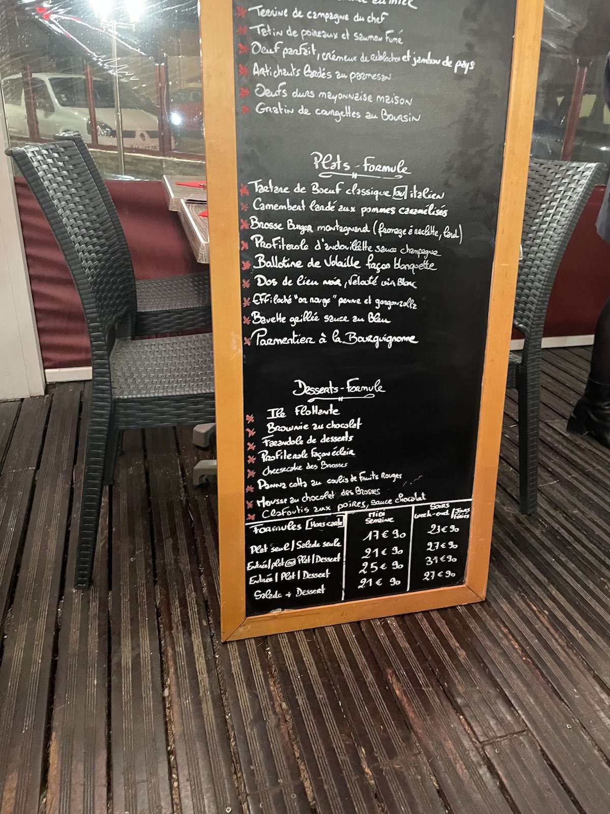 Ils veulent faire genre resto gastro mais la qualité n'y est pas, ce n'est pas du frais,la quantité non plus, vraiment déplorable, je me sent mal après avoir manger leur dorade surgelée. En terrasse ne parlons pas du bruit de circulation. Je n'y reviendrai pas. Parcontre le personnel est sympa!