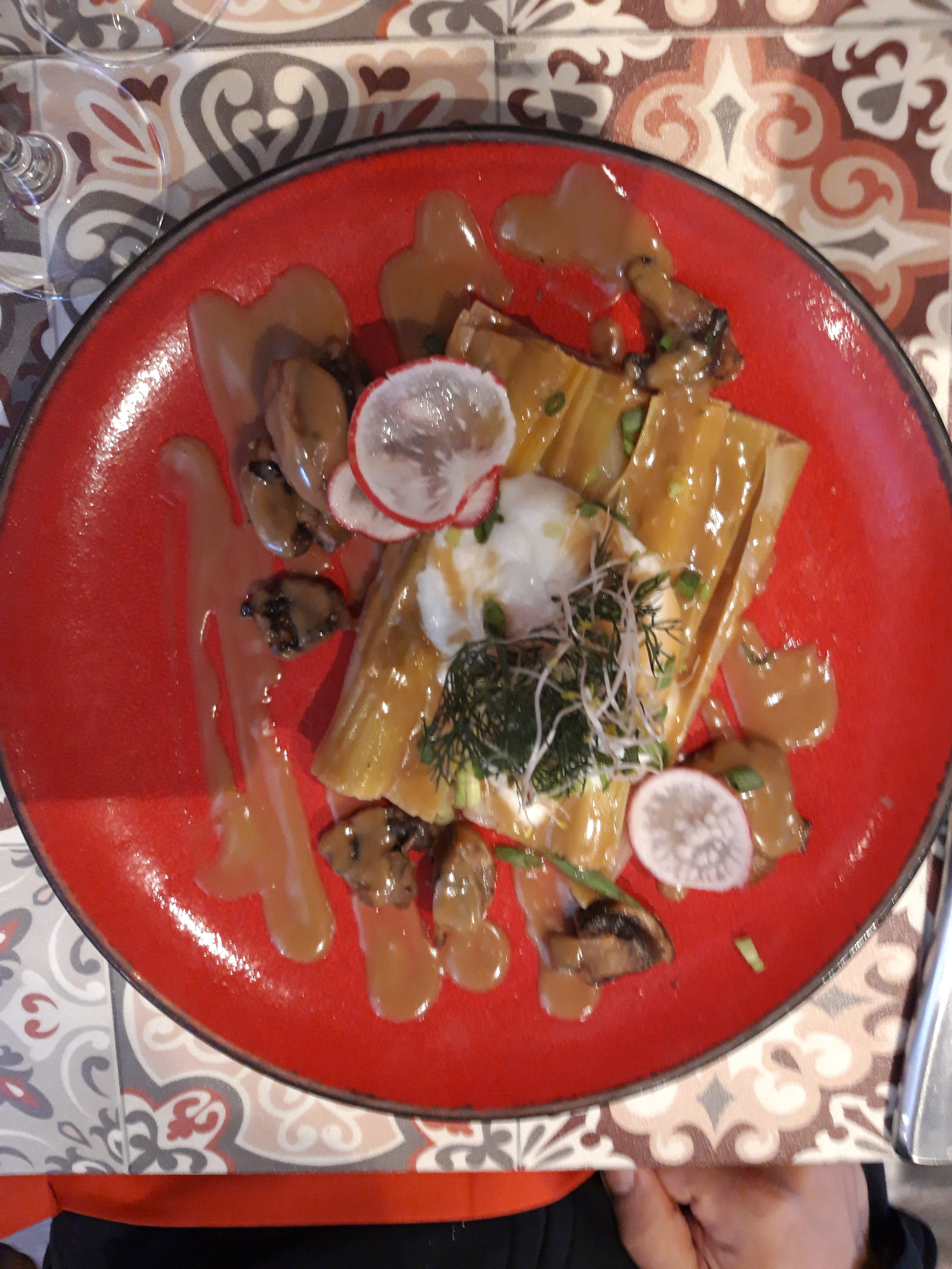 Un peu déçue Le service était long car le restaurant était bondé Mais j'ai pas trouvé mon plat très fameux, cela manquait de goût, dommage pour le prix.