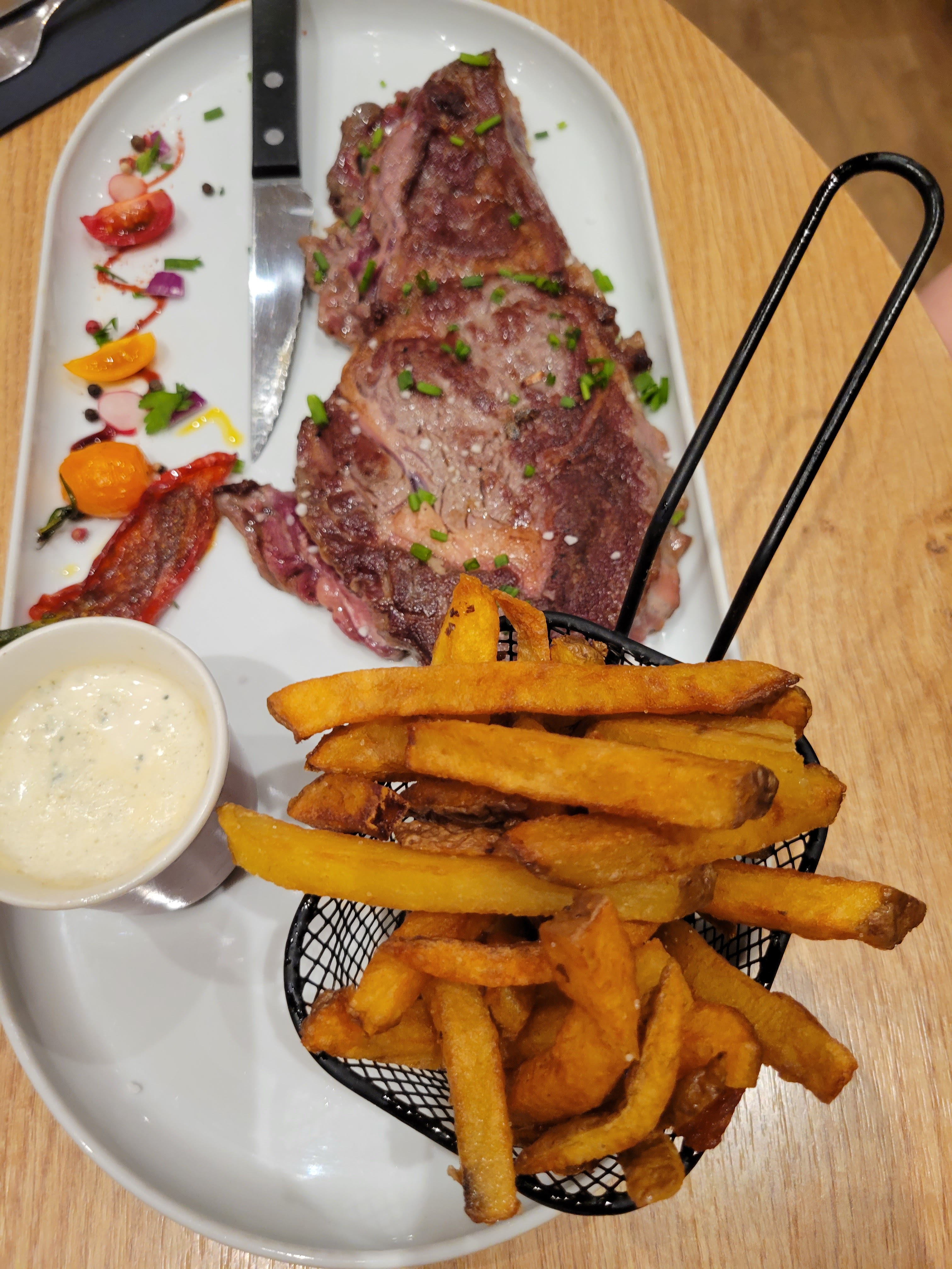 Les plats n arrivent pas en même temps sur une table de 4, une pièce du boucher à 25 euros plus petite qu un steak haché avec du riz sec....salade chevre de mauvais goût, nous y sommes allés car il y a toujours du monde mais avons été extrêmement déçus ....