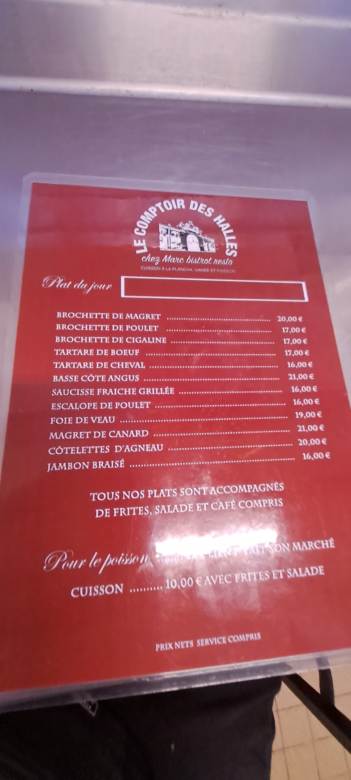 Une institution, incontournable aux halles. Possibilité d'acheter sa viande, son poisson aux halles et payer que la cuisson. Excellent concept, beaucoup de convivialité et de bonne humeur. N'hésitez pas à vous y arrêter. Nous adorons acheter des couteaux au poissonnier et se les faire préparer sur place à la plancha.