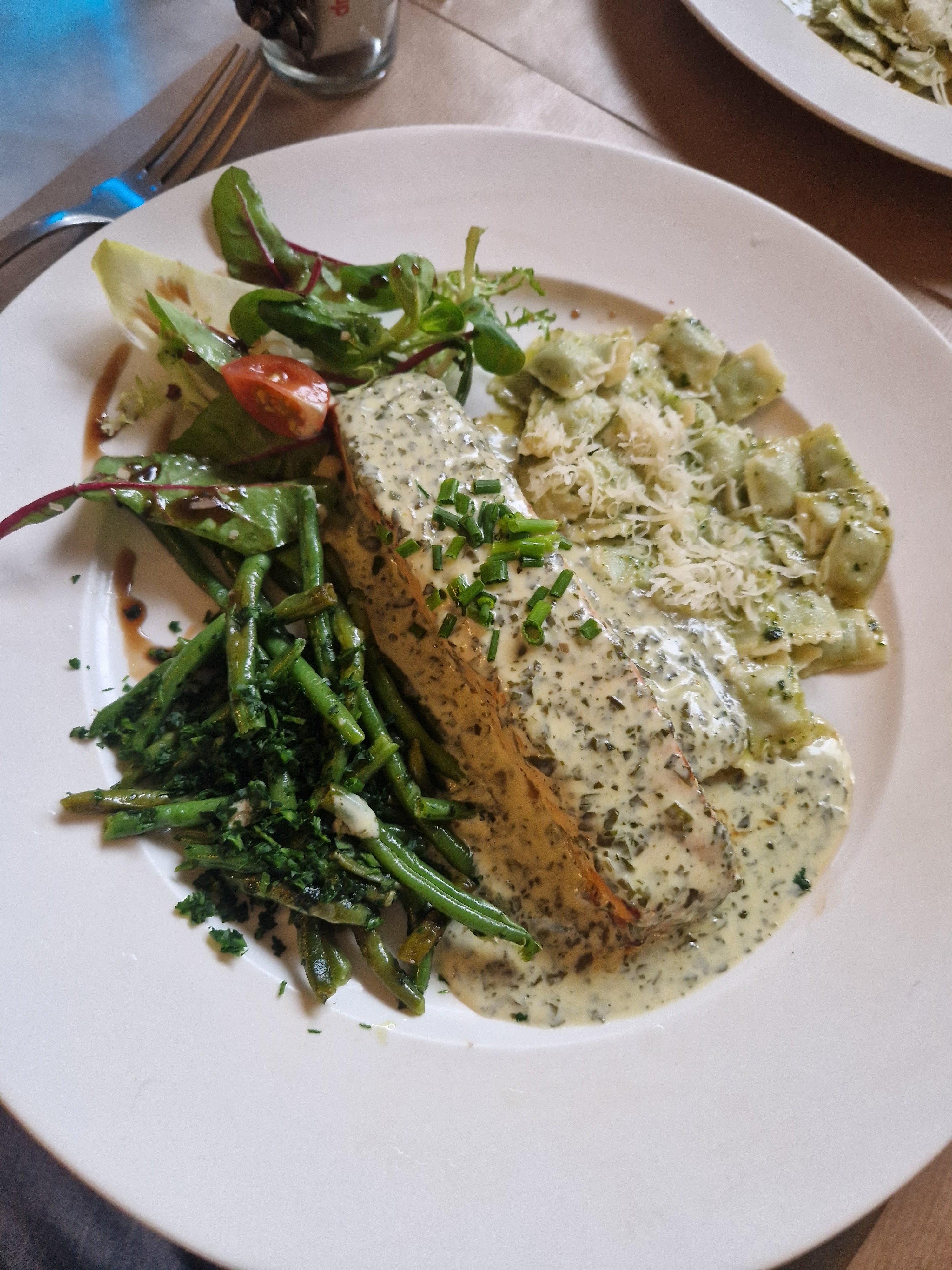 Accueil plus que chaleureux, avec une déco très atypique mais qui fonctionne à merveille ! Les plats que nous avons pris ( ravioles aux chèvres et . basilic et saumon+ ravioles ) a été un véritable régal et plaisir pour nos papilles :) Le personnel (patronne et employé) au top et très accueillant, on a vraiment apprécié et avons passé un excellent moment dans ce restaurant Nous reviendrons très vite c est certain ;)