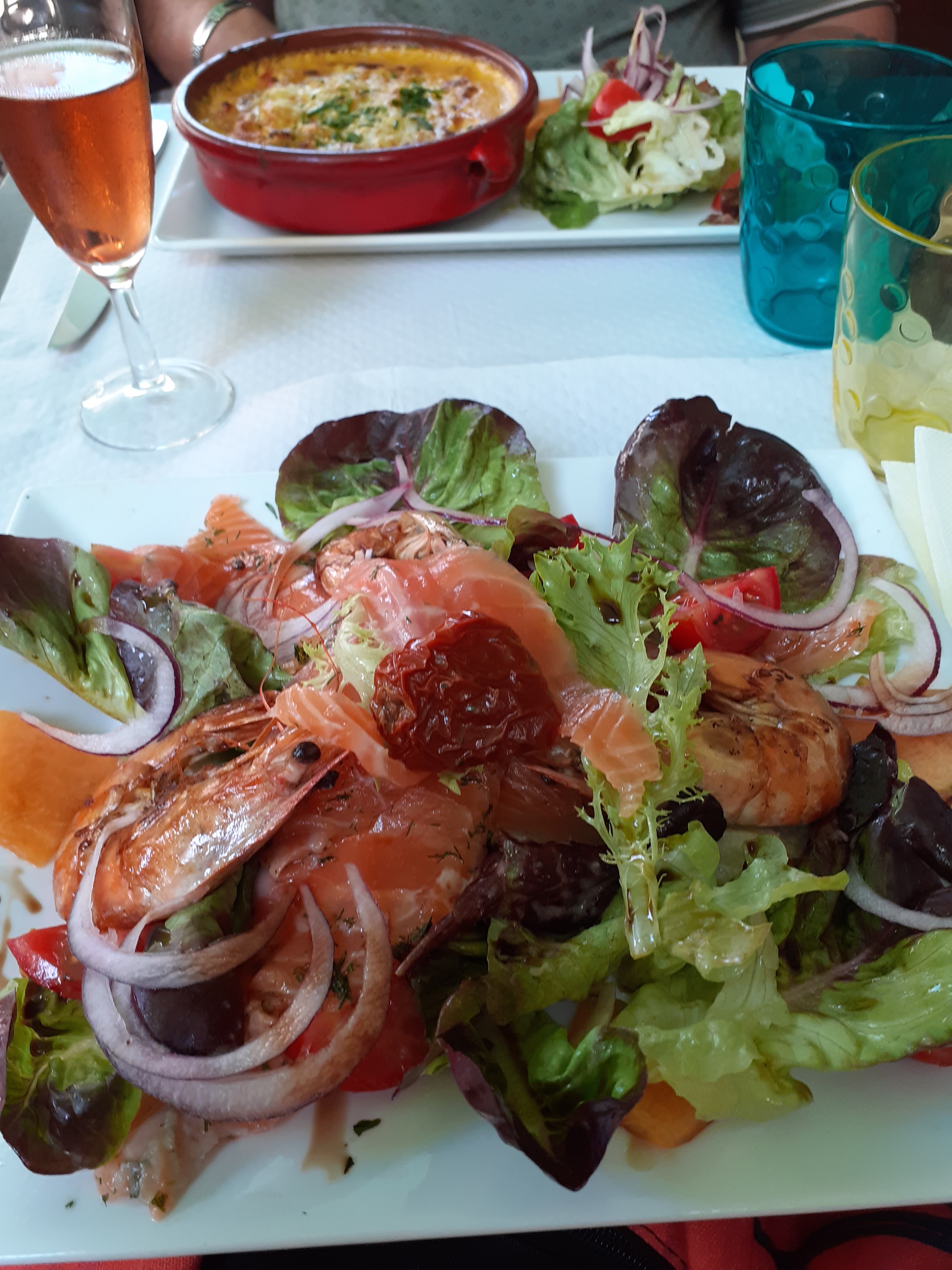 Petit restaurant ou nous avons bien mangés (salade ravioles assez gourmande et steak de saumon tout autant.) Personnels souriants. Toilette propre, (pas accessible handicapés) Ambiance assez calme. Je recommande 👍