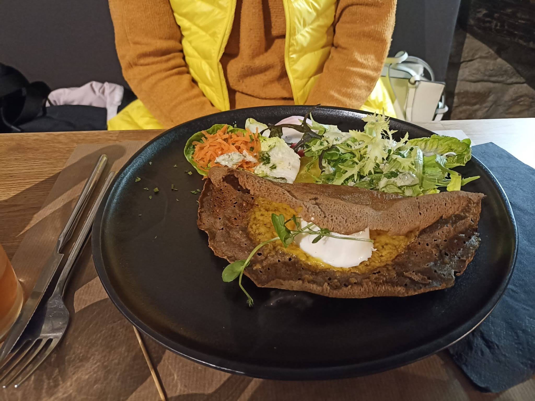 Nourriture délicieuse dans ce restaurant chaleureux. Des saveurs surprenantes. Aussi très hospitalier. Quand nous sommes partis, il faisait mauvais temps, le propriétaire nous a très bien aidé (avec de jeunes enfants) à accéder à la voiture.