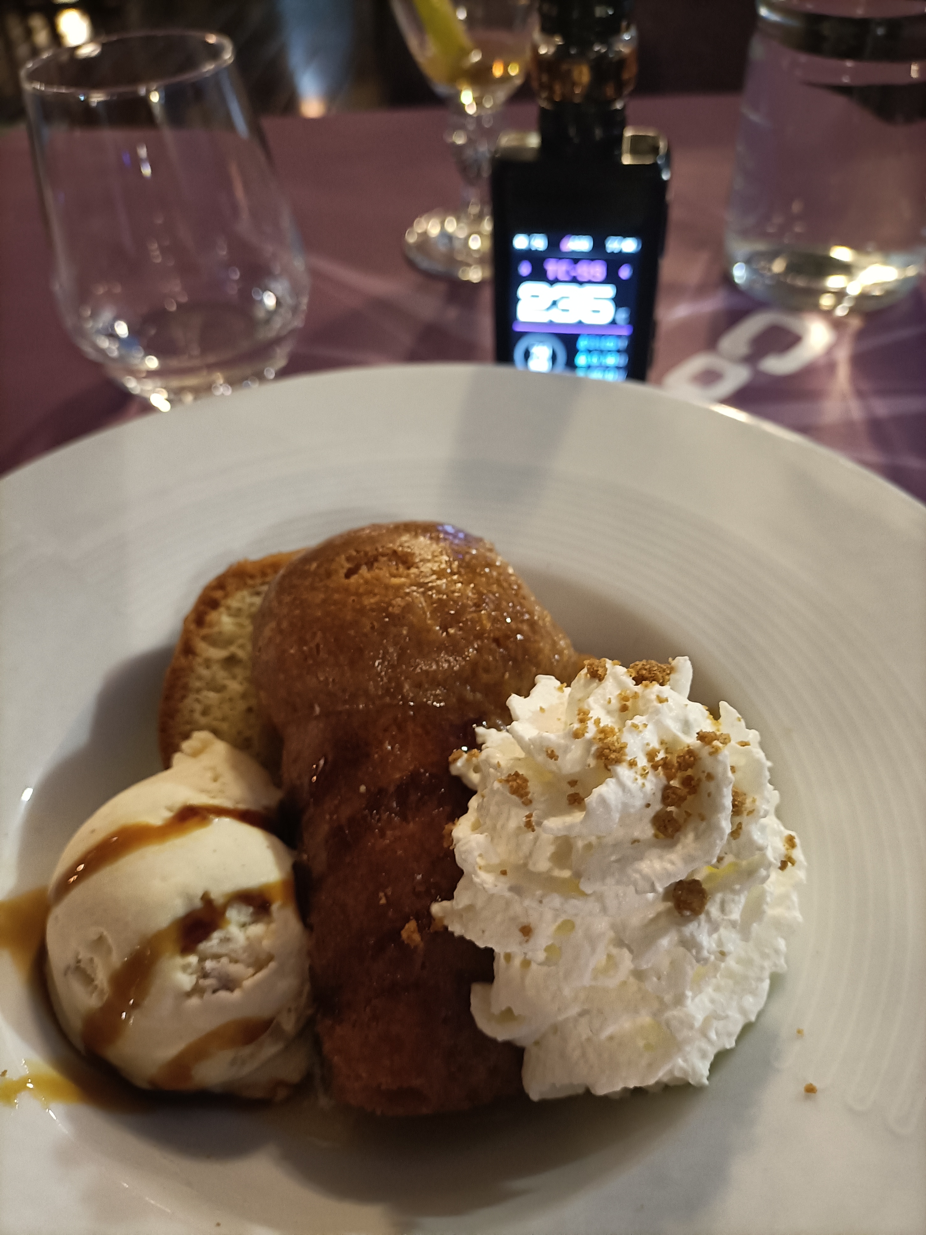 Accueil parfait Foie gras super Risotto aux gambas très bien Un tout petit bémol mais léger, le baba aurait mérité un petit sirop vanillé. Mais très bien dans l'ensemble, parole de Chef. Merci pour votre accueil, à bientôt si la saison me le permet.