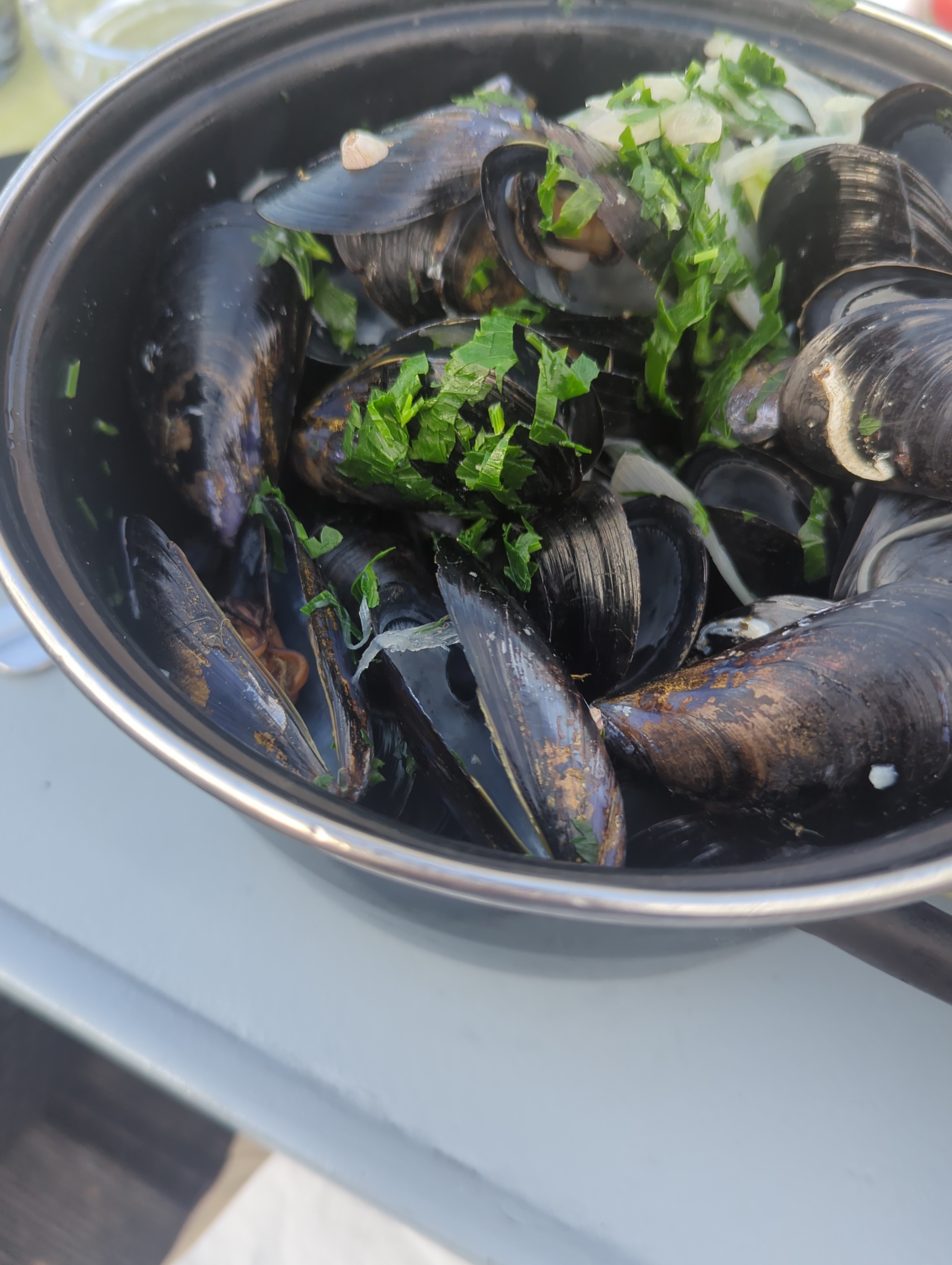 Emplacement sympa.... serveurs très attentionnés...mais je ne sais où ont grandi les moules....mais elles étaient minuscules.... Quant à l'aïoli du comptoir pas beaucoup de créativité....beaucoup de légumes !!!! Le vin était bon.... bien cher par rapport au produit servi!