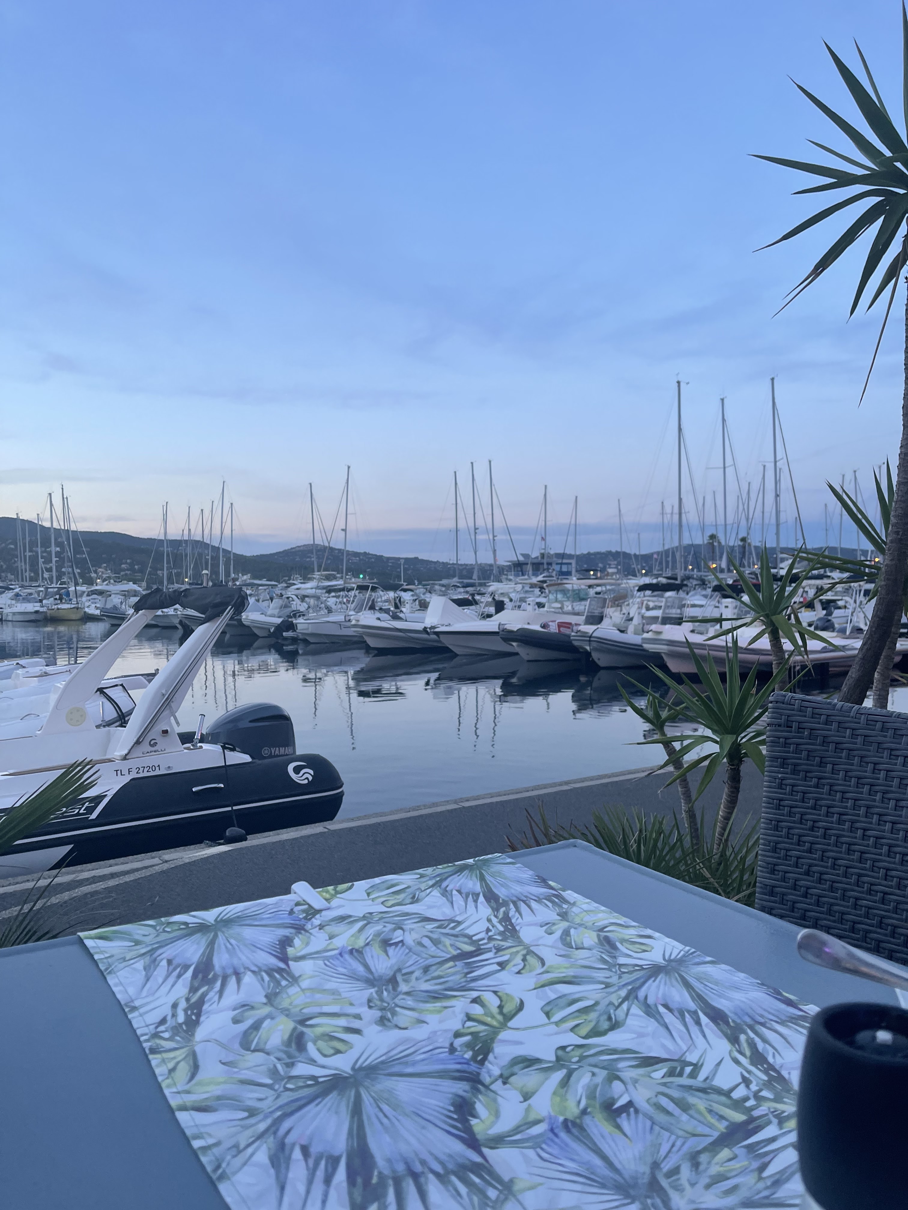 Joli cadre sur le port de Cavalaire Serveuses et patronne sympas et souriantes Bons produits, bonne cuisine Tarifs raisonnables par rapport au cadre Sophie et Christophe