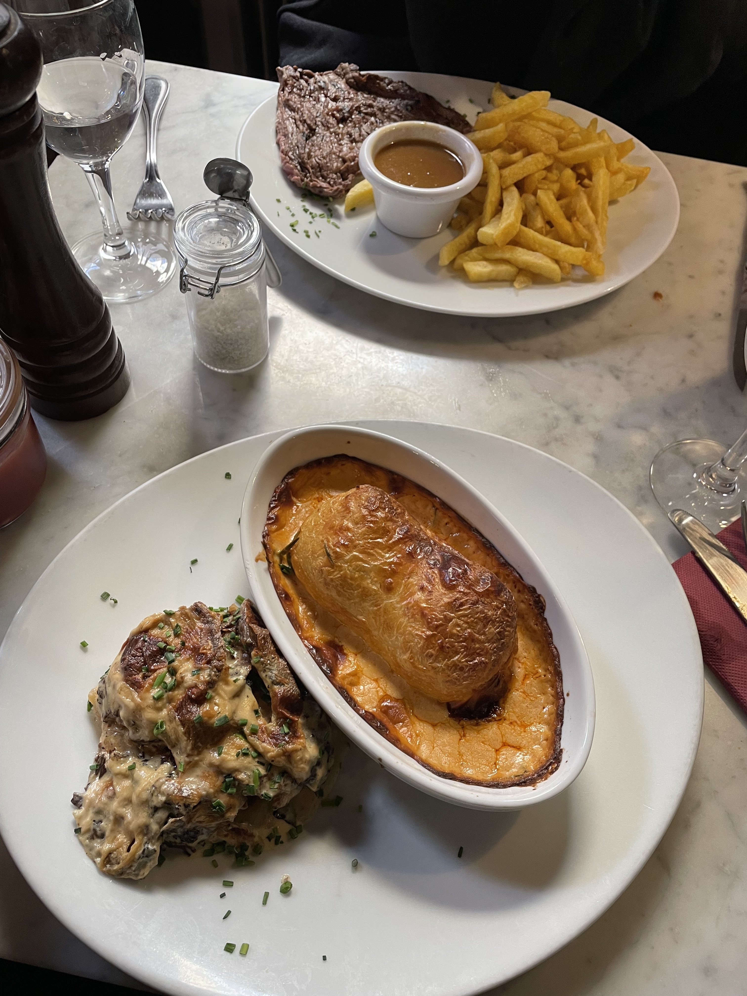 Je déconseille vivement. Bière blanche servie sur une fin de fût…ok cela arrive. Les escargots en cassolette à la crème, sans intérêt. Leur spécialité le bœuf? J’ai commandé une entrecôte certes saignante mais brulé et je ne parle pas du goût… Le Bœuf bourguignon n’est vraiment pas dingue non plus, 3 légumes se battent en duel, pas de lard dedans… bref passez votre chemin je vous en supplie. En plus de la qualité médiocre c’est cher au final 80€.