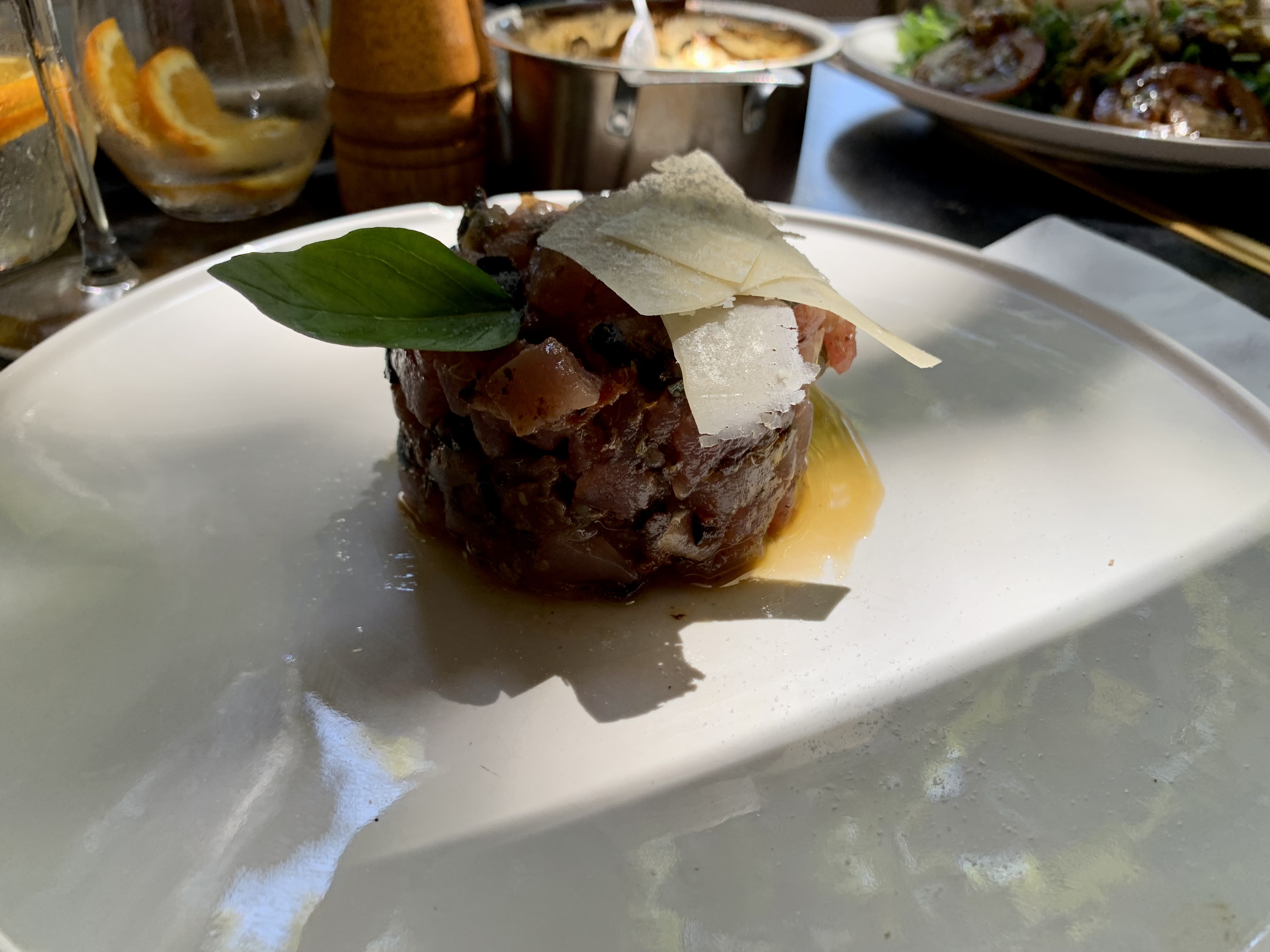 J’avais entendu parler de ce restaurant pour sa viande et cela faisait longtemps que je voulais l'essayer. Dîner à 4 avec des italiens à cheval sur leurs traditions. Apéro avec une délicieuse focaccia et un américain. Antipasti avec un bon vin + cœur de rumsteak ratatouille et écrasé de pommes de terre avec au final une tarte aux figues … nickel, toute la table était heureuse 😋 Service adorable et bon rythme. Juste une amélioration à faire sur la décoration qui a un vrai potentiel mais manque un peu de lumières. J’y retournerai 😎