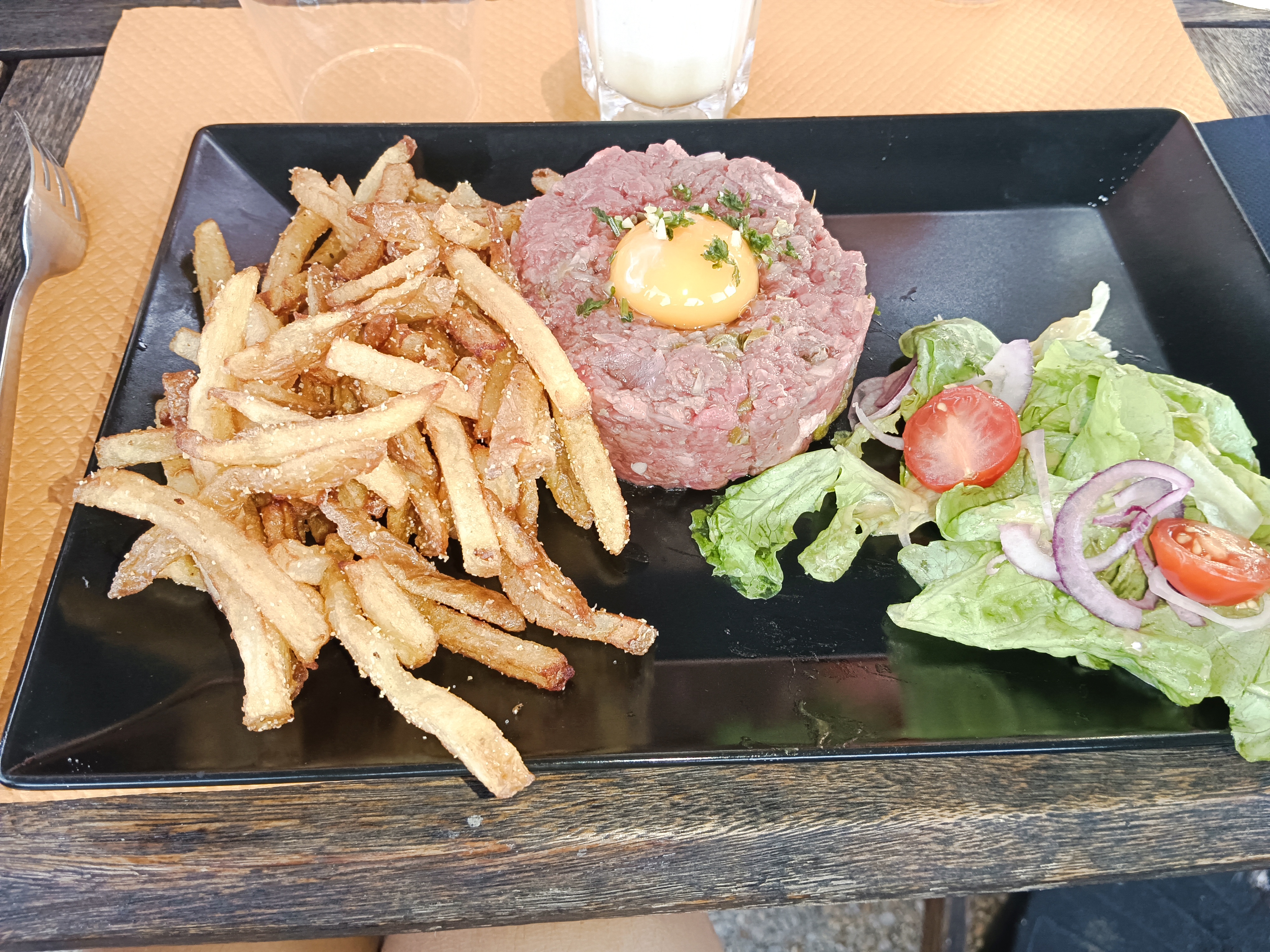 Personnel très aimable, salade de bonne qualité. Prix raisonnable. Laisse le temps de prendre l'apéro et déguster l'assiette.