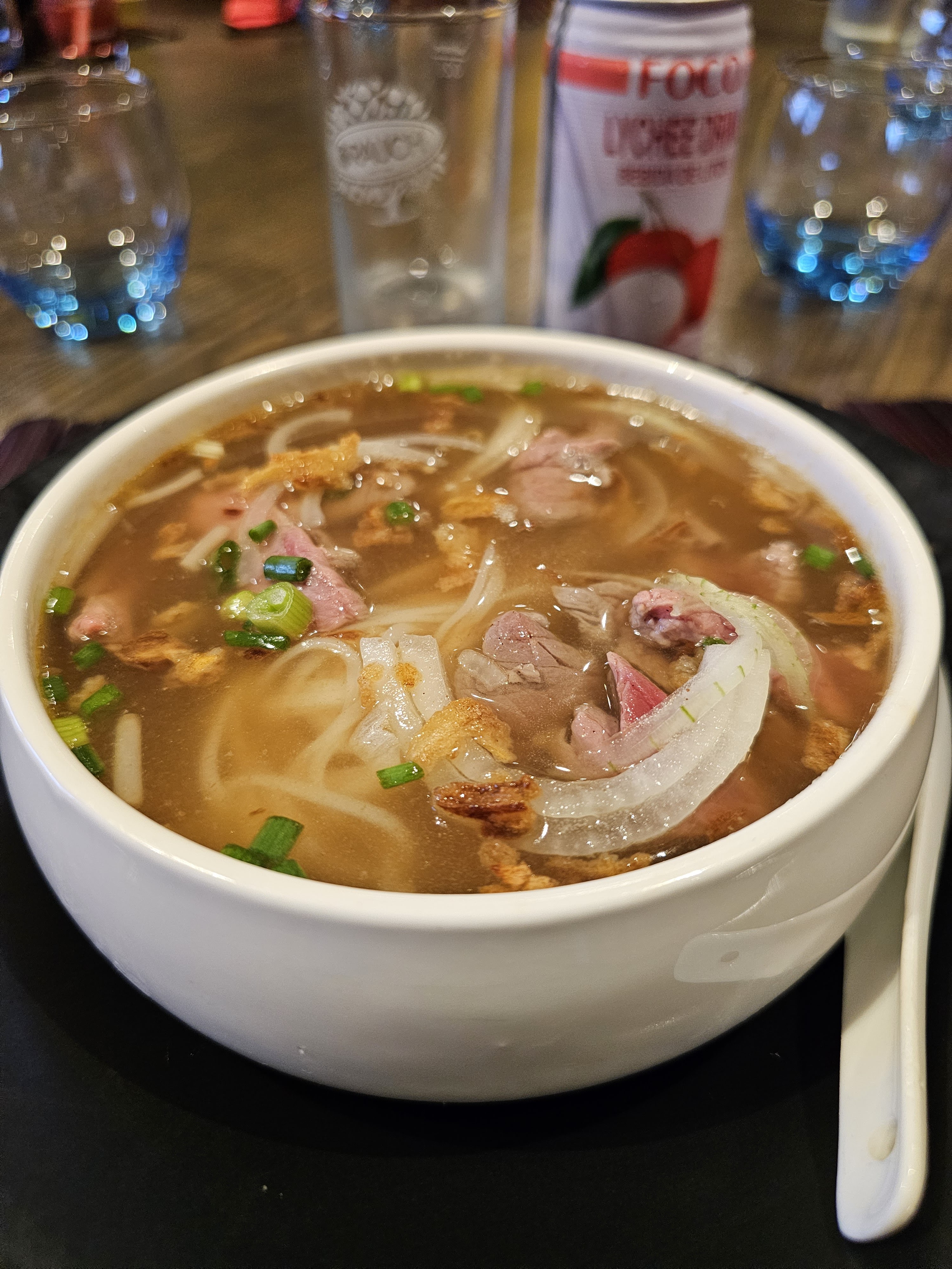 Très déçu du repas j’ai pris une soupe Pho en entrée mais sans réel saveur trop goût d’anis à mon avis faite pas comme le veut la tradition. Et pour le Bo Bun en plat c’était pareil manque de sauce et de piquant à mon goût. Par contre les viandes étaient très bonnes dommage.