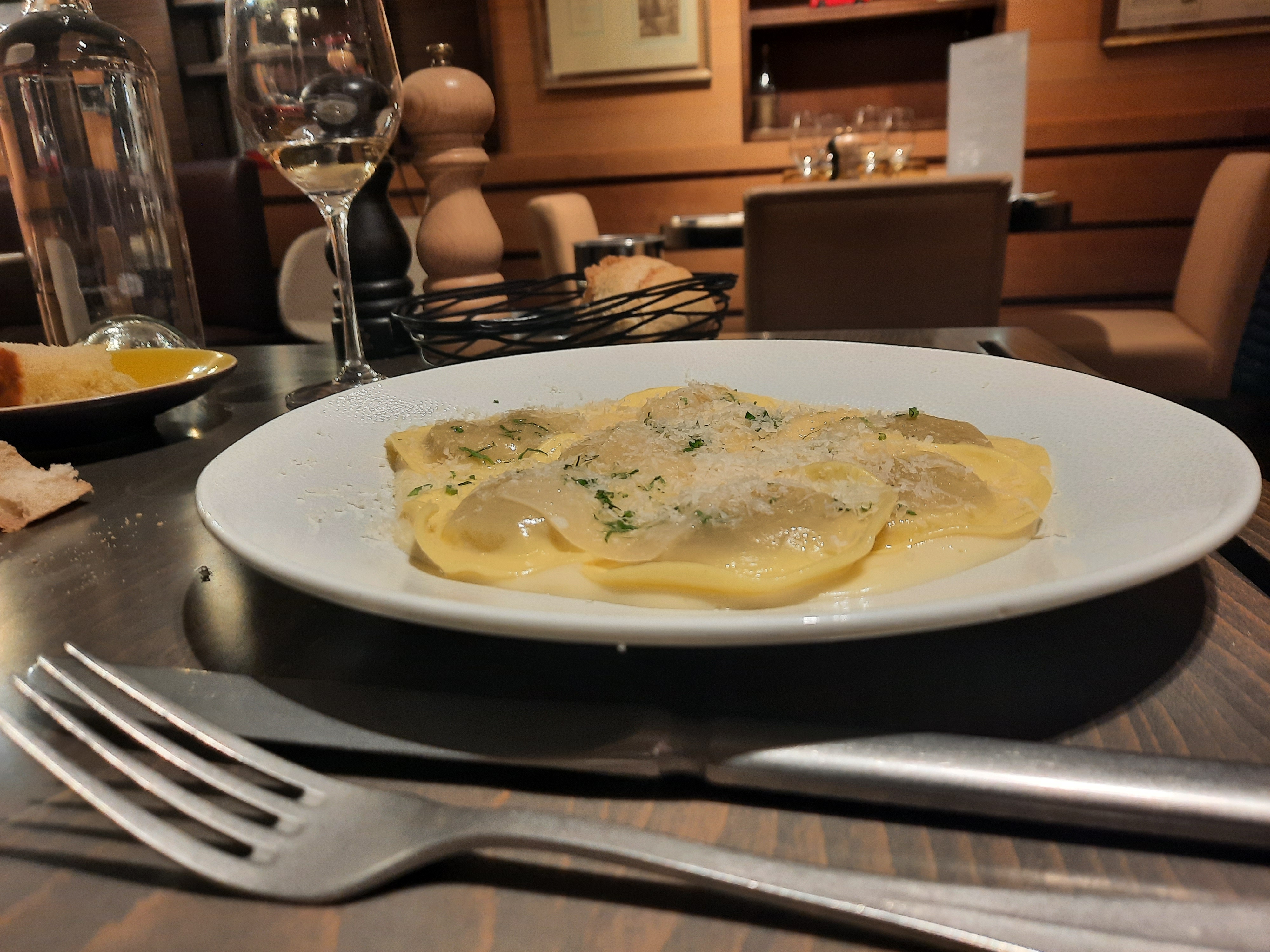 Excellent dîner. Très bon rapport qualité/prix. Les ravioli au boeuf étaient excellents et la mousse au chocolat huile d'olive/fleurs de sel étonnante. La salade caesar en entrée est très copieuse et généreuse en parmesan. Seul le prosecco aurait mérité d'être un peu plus frais. Très bon service, merci encore pour cette belle soirée