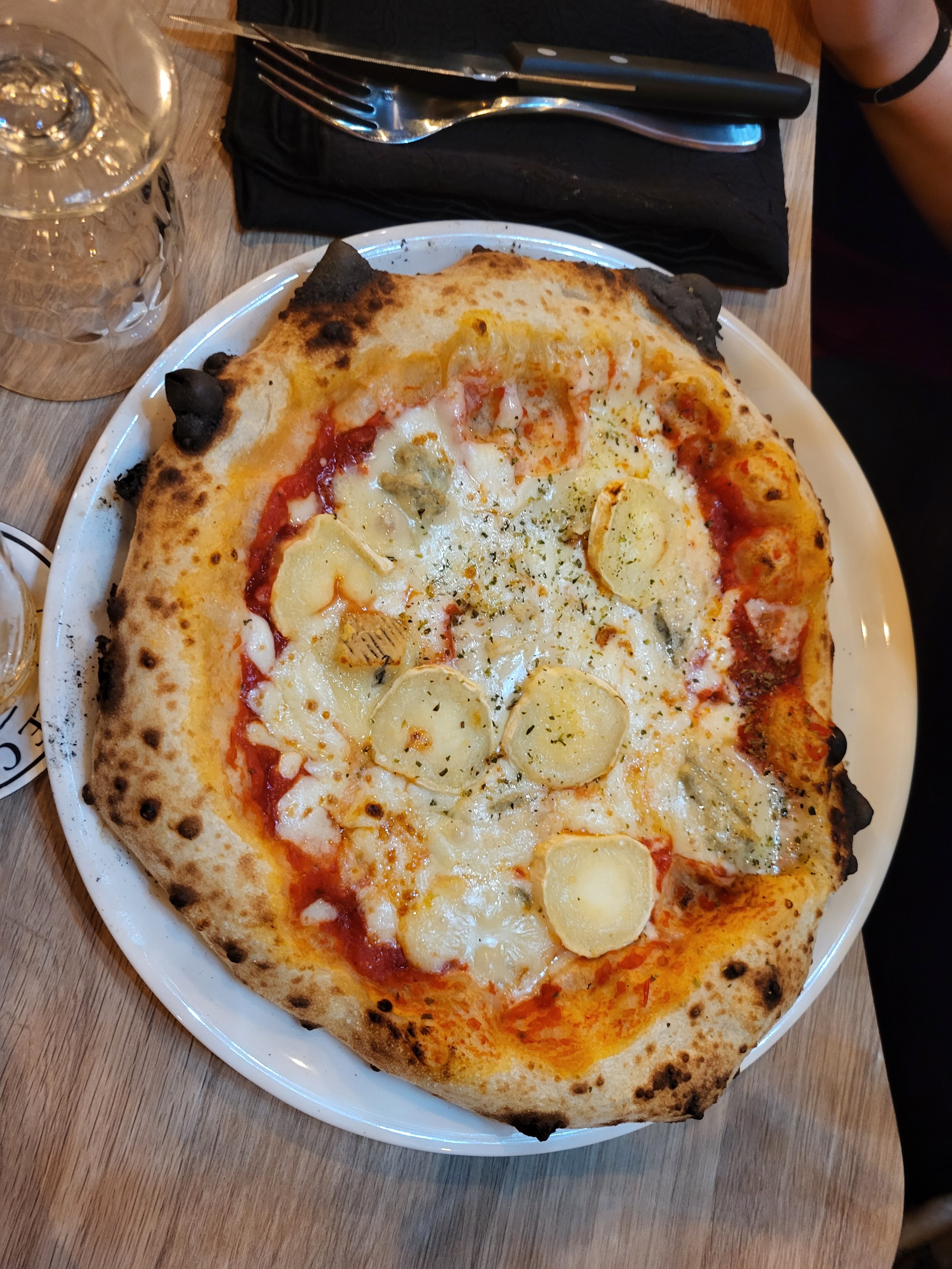 Belle découverte hier soir avec 2 excellentes et surtout copieuses Pizzas Napolitaines servis avec un délicieux vin de Chianti. Cependant, les prix sont un poil élevés (18/19€ les pizzas) mais la qualité est au rdv. Les espaces entre les tables duo sont à revoir également. L'accueil et le service étaient un sans faute et respiraient la sincérité. Bonne continuation !