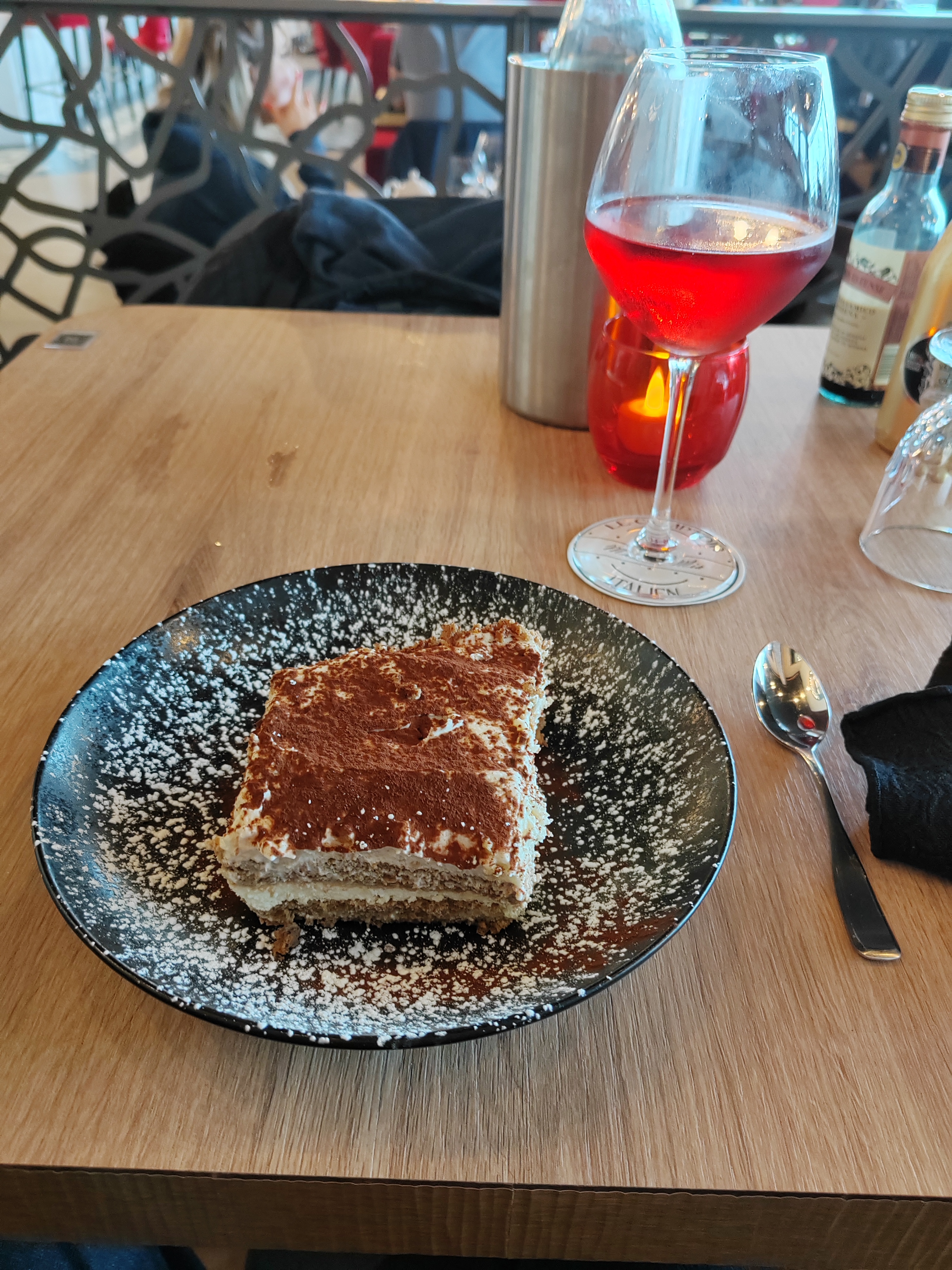 Un de mes rituels d'anniversaire est de déguster un bon tiramisu. Et, cette année, ma quête, aidé par mon chéri, m'a conduit à pousser la porte de votre resto. Je ne le regrette absolument pas. En tout cas, mes papilles sont ravies, de l'entrée au dessert tout était succulent. Mention spéciale à l'accueil, à la bonne humeur sans oublier la chanson surprise au moment du dessert. Les parts sont plutôt assez généreuses et du coup, on était content de pouvoir repartir avec les restes à la maison. On reviendra avec plaisir !
