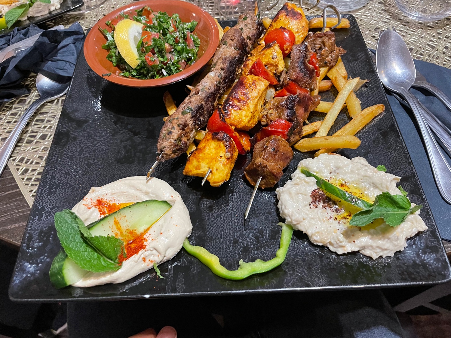 Tres belle découverte à l'occasion d'un passage à Cherbourg. Pas facile de trouver un resto ouvert le lundi soir, sans réservation. Et là, nous avons été accueillies à 5, installées confortablement sur une table ronde et nous 'nous sommes régalées de mezzés et autres brochettes. C'est très copieux et délicieux. Je recommande !