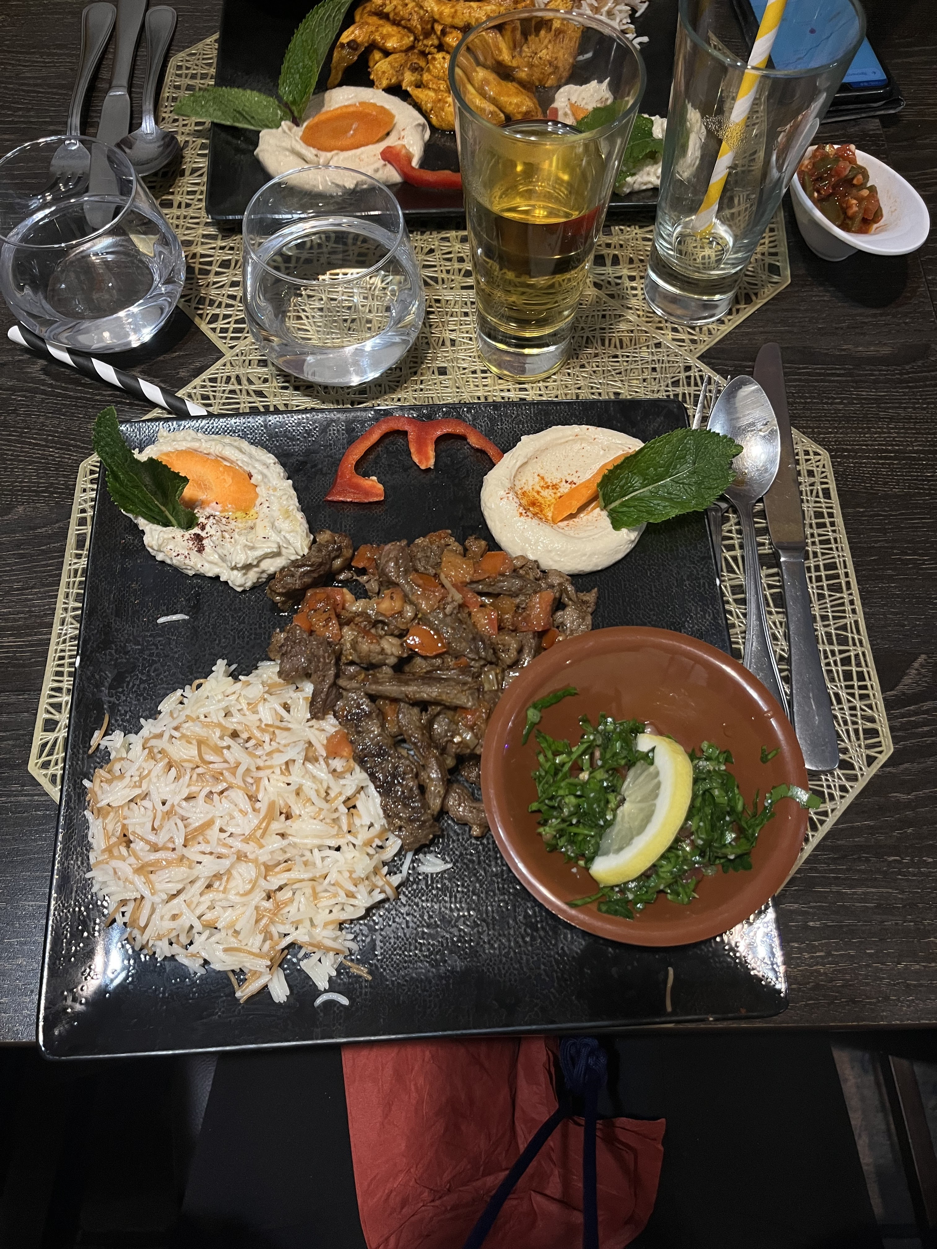 Je recommande fortement ce restaurant, serveur très serviables, plats exceptionnels (fait maison à 100%, on sent que tout a été travaillé comme il le faut, les produits sont frais, top de chez top!) et une ambiance orientale chaleureuse, j’ai adoré !