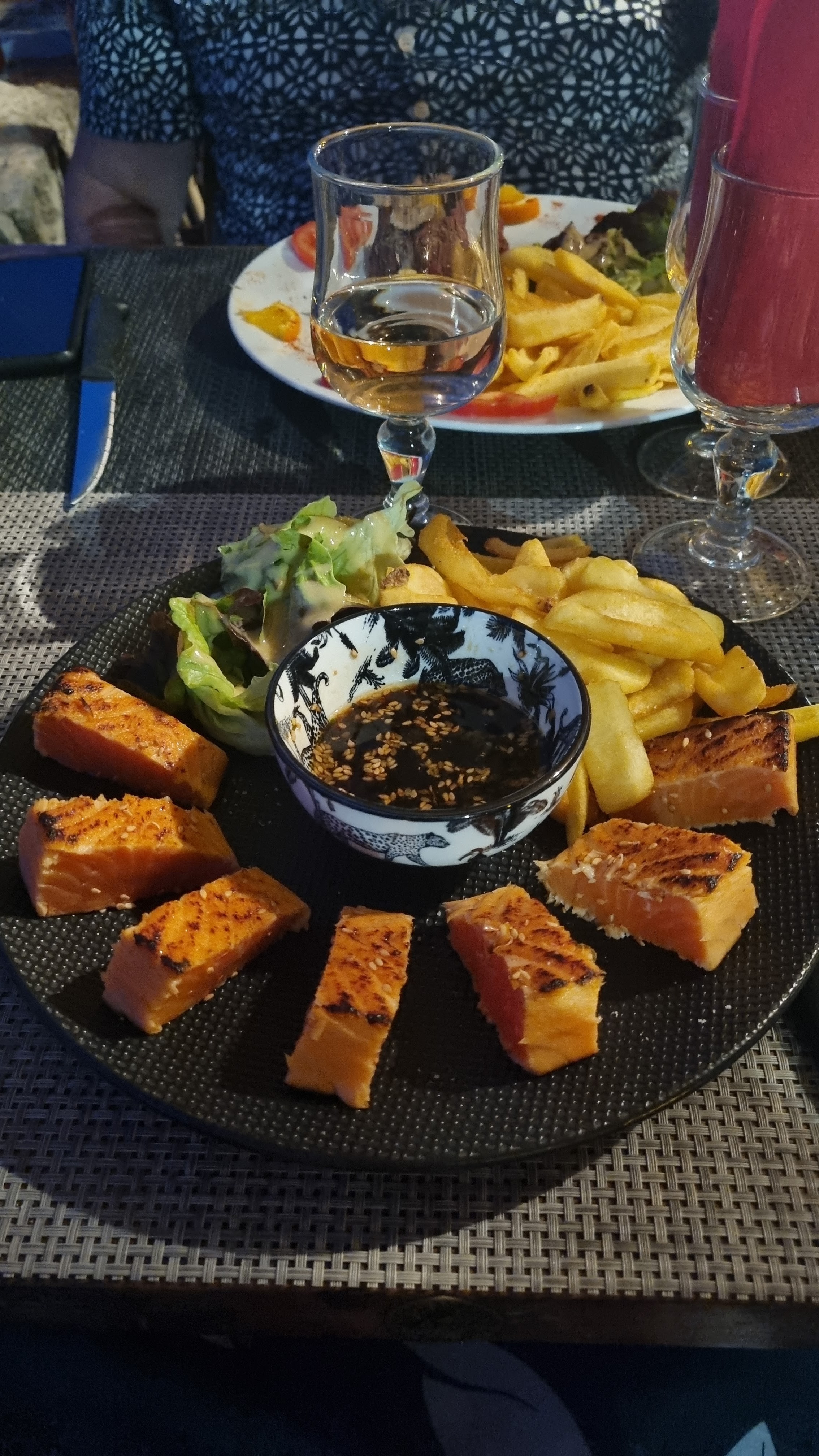 Outre la vue magnifique sur le Lac qu on dirait la Mer Méditerranée, on re-découvre un vrai service dans toute sa quintescence, ce qu on ne retrouve nulle part ailleurs ! Si on vous dit qu'il n y a plus de moules soyez clément.e.s et non pas frustré.e.s, c est qu ici on travaille vraiment avec les produits selon arrivage et donc gage de produits frais Nous remercions en particuliers Titou, Enzo et Tony (Antonio) pour leur professionnalisme doublé de sympathie ! Nous avons, en plus de manger une excellente viande grillée au charbon de bois, en bonus nous avons passé une excellente soirée!