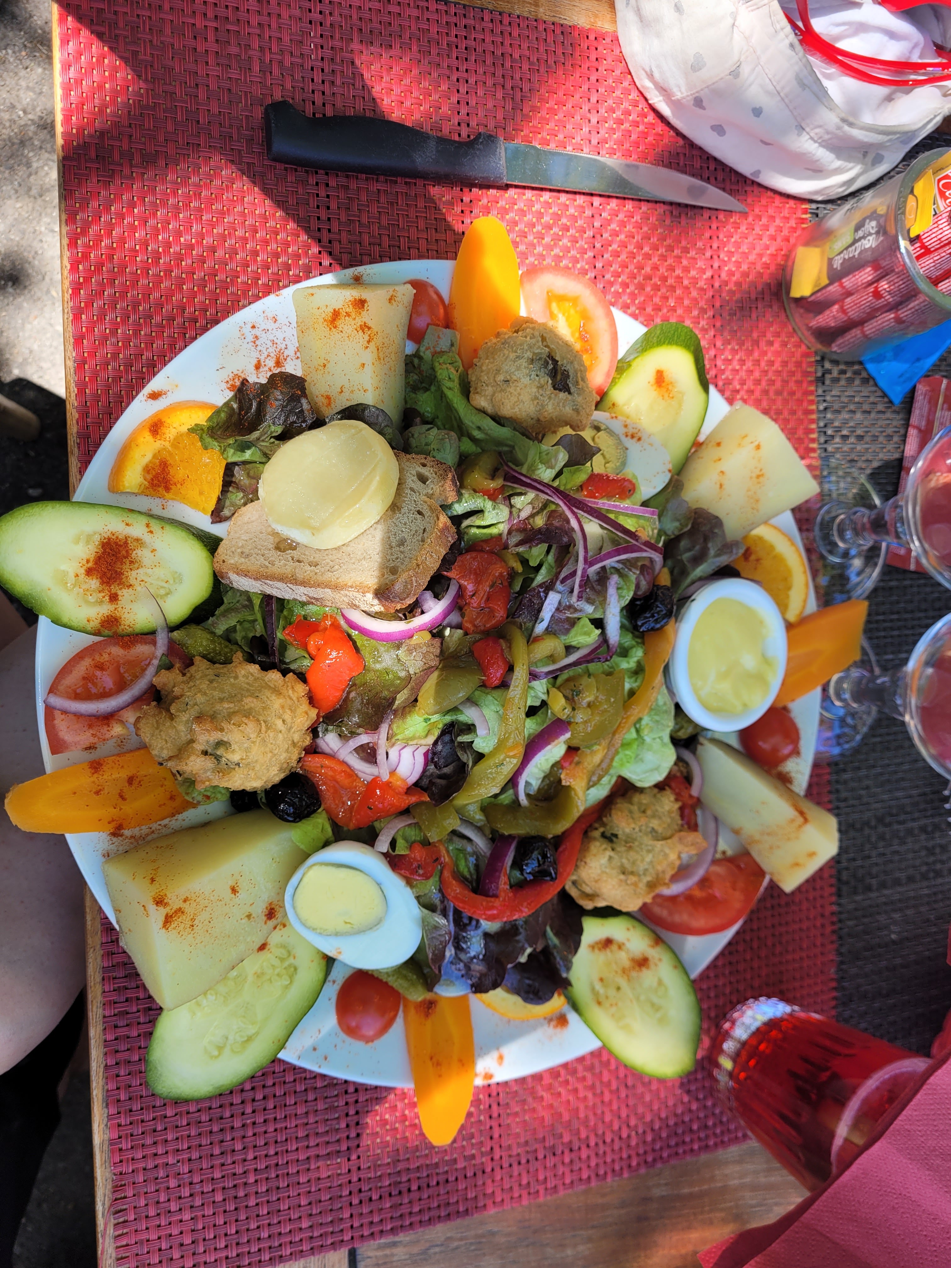 Très belle surprise, arrêt au village lors d une rando vélo, 5 plats différents et on c'est tous regalé. La vue sur le lac est magnifique.