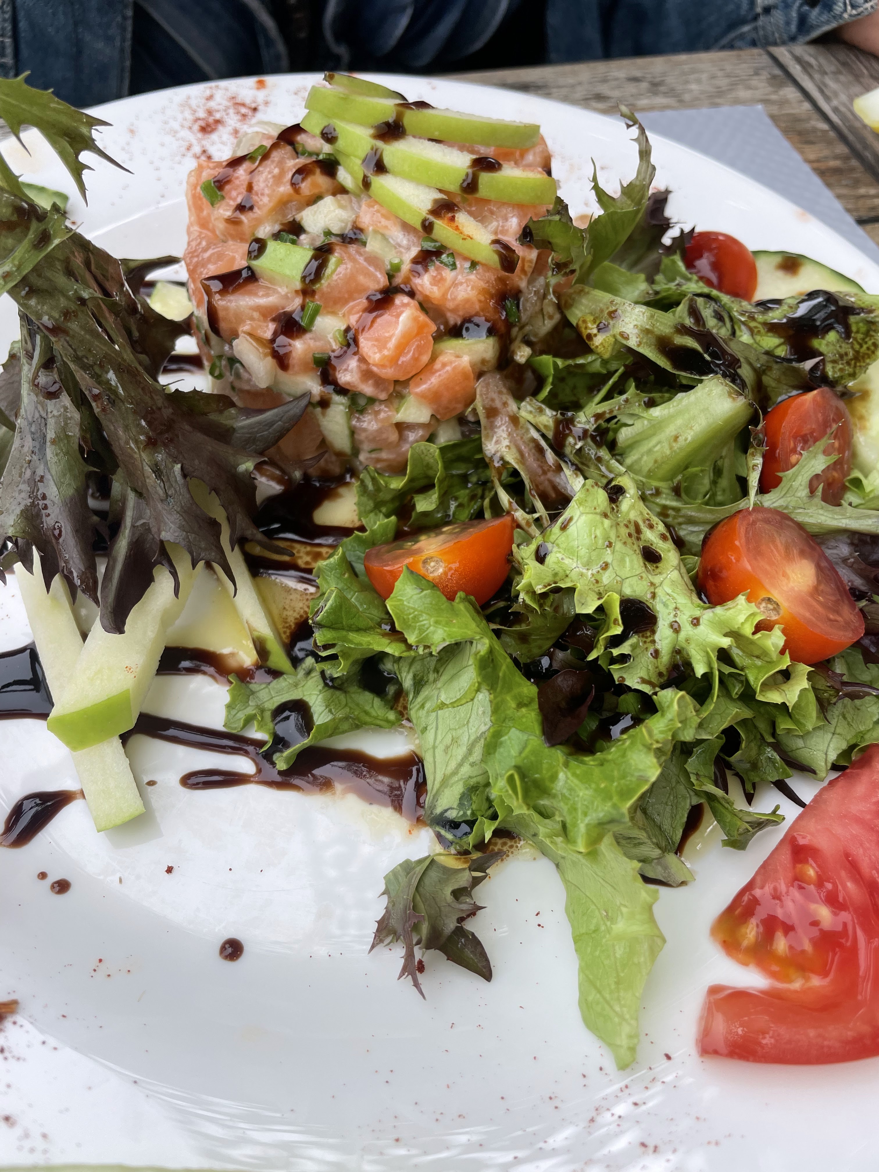 Nous sommes arrivés vers 14h sans avoir réservé, mais on nous a rapidement trouvé une table pour 4 personnes ! Pour le déjeuner, on a opté pour le menu saveur à 34€, comprenant une entrée, un plat et un dessert. Les plats étaient frais et délicieusement garnis. On s'est vraiment régalés ! Le service était rapide et le personnel était dynamique et d'une grande sympathie. Un restaurant avec un excellent rapport qualité-prix. Si vous êtes dans le coin, n'hésitez pas à vous y rendre pour une pause gourmande !