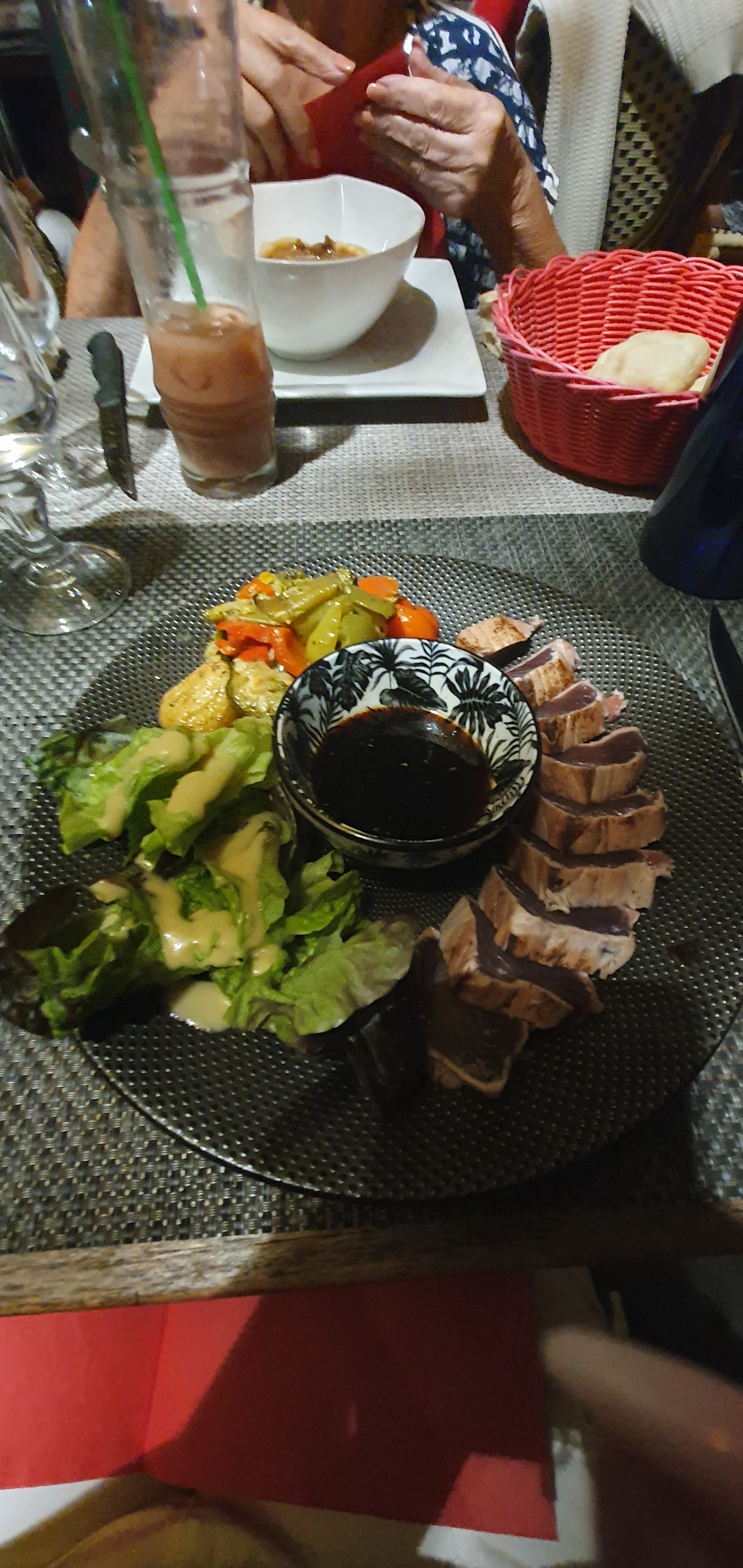 Tartare de thon aux truffes excellent! Habituée à goûter les cocktails ceux-ci sont beaucoup trop alcoolisés j’ai demandé de remettre du jus dedans et la serveuse bien gentille m’en a remis. Très belle vue. Dame blanche délicieuse.