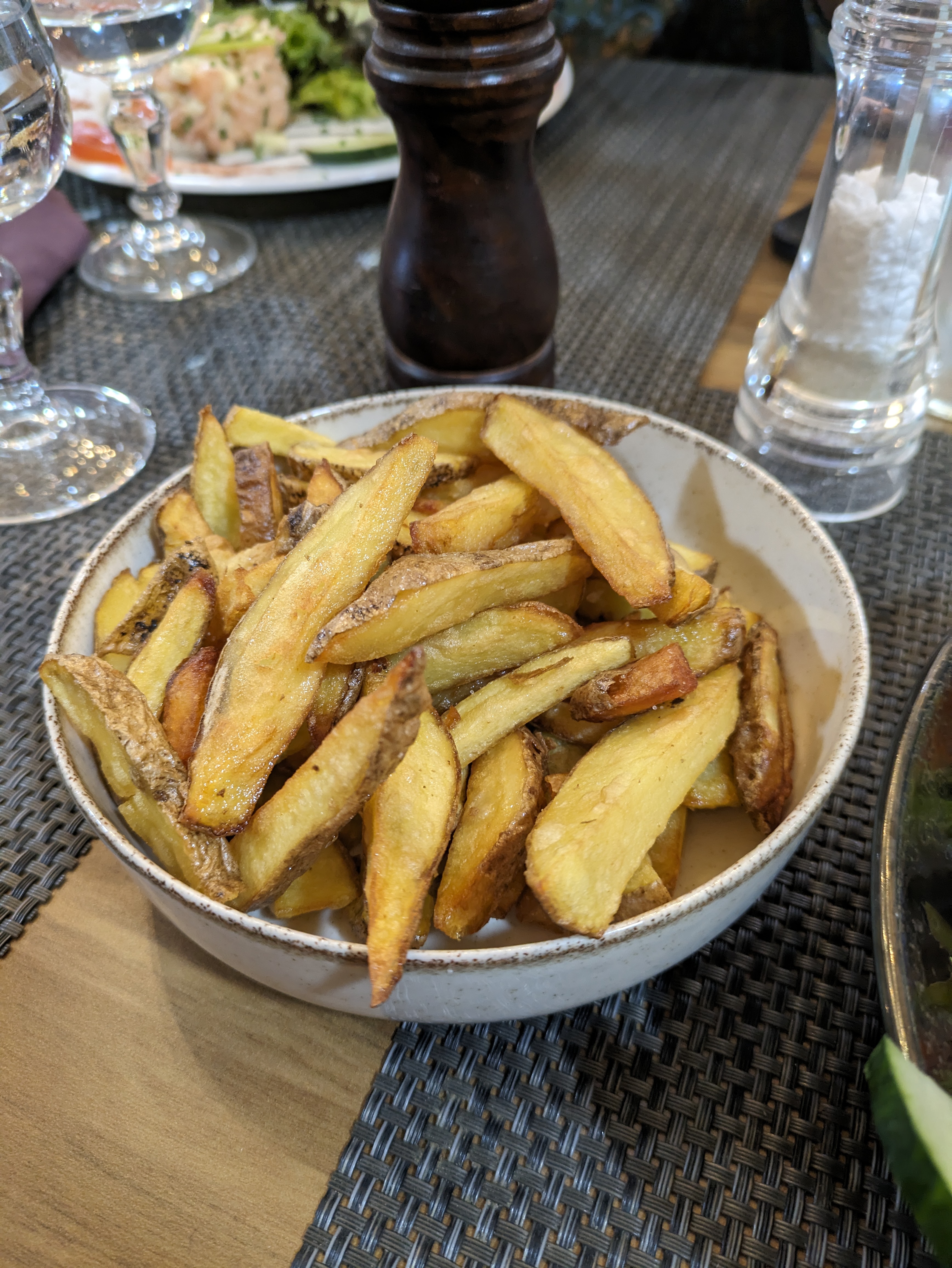 Restaurant très bien placé mais c’est tout… On nous place à l’intérieur car complet en extérieur pas de soucis nous avons accepté. Par contre la suite… on nous amène les cartes mais super long moment d’attente pour la prise des boissons. La serveuse nous informe qu’elle prendra les commandes pour les repas après qu’on soit servis des boissons sur la table pour une question d’organisation… nous avons finis nos boissons que la prise des repas n’était pas faite. On nous sert les repas qui sont moyens et vu les prix on s’attendait vraiment à mieux. Nous n’avons pas pris de dessert sauf notre fils et sommes partis. La serveuse était gentille mais manquait cruellement d’organisation dans son travail. C’est dommage… je pense plus à un attrape touriste on aurait dû chercher ailleurs.