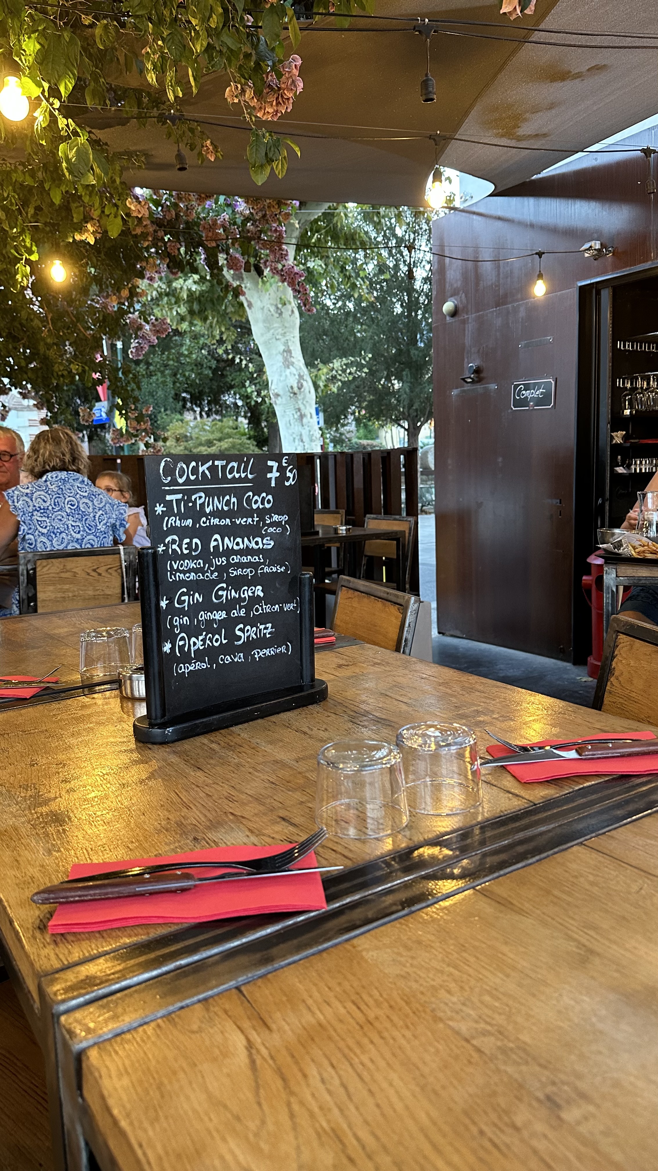 Une très chouette adresse tapas, bannoffee & bounty faits maison & vin excellents, accueil & service au top sans oublier le cadre, la terrasse naturellement ombragée grâce à ce magnifique bougainvilliers de 60 ans.