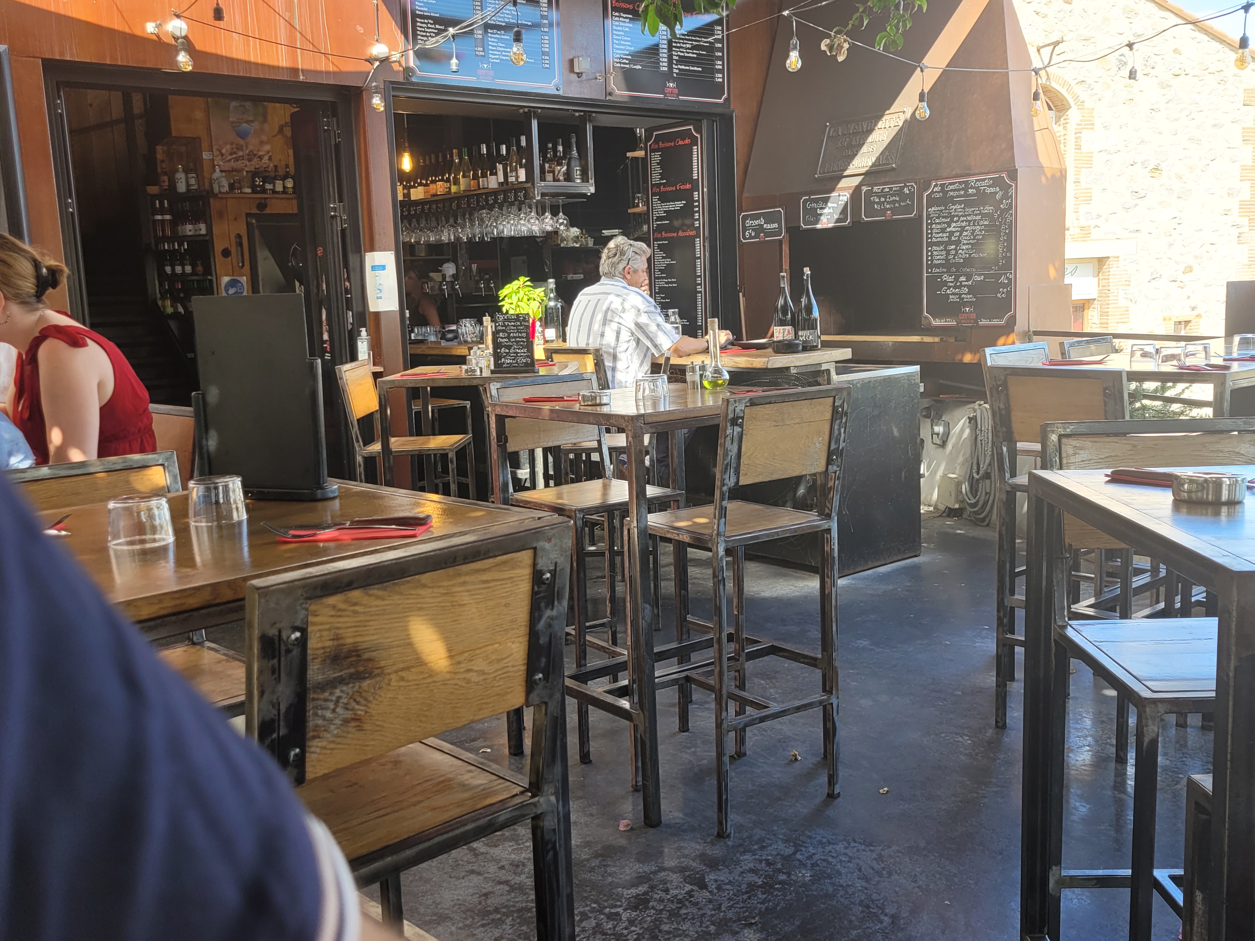 C'est un petit resto, ou il vait mieux réserver, car les places sont vite prises. Petit resto ombragé, avec des tables hautes, un personnel sympa et un service au top. On vous conseille les tapas, nous découvrions ce type de plat. Pas déçu de ce repas avec tapas, des frites maisons, avec un verre de rouge. C'est un resto à ne pas louper lors de votre passage dans le coin, il en vaut le détour. Je vous le recommande vivement, npo réserver !!
