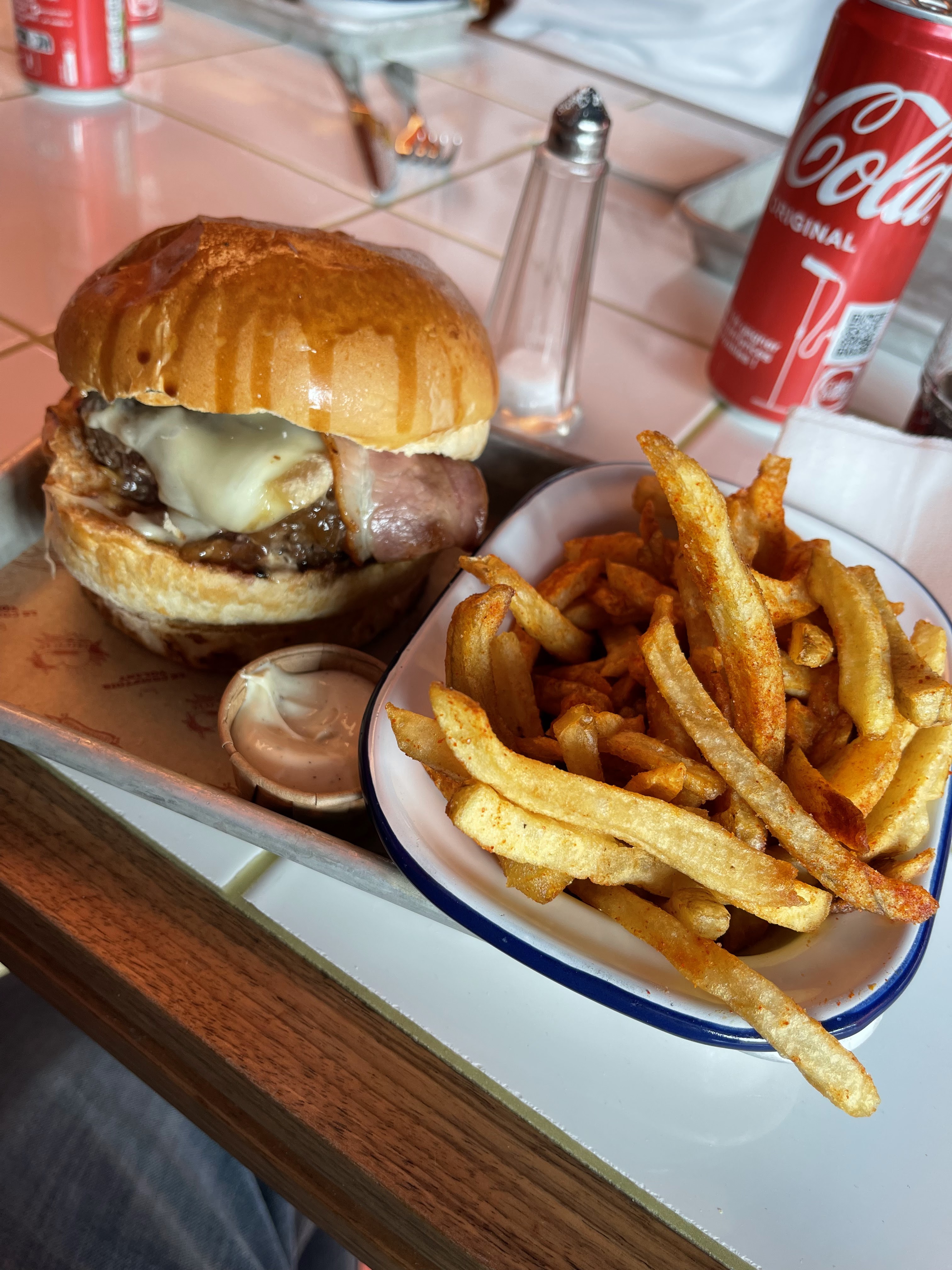 Le burger Texan dirty bbq est une tuerie ! Le fatal mariolle et l’emmental les fromages n’étaient pas assez fondu un peu plus fondu serait peut être mieux ! Point à améliorer : demander la cuisson du steak car j’ai eu un à point alors que je préfère saignant et mon ami l’inverse … Le cadre annee 70’ est vraiment agréable 😙